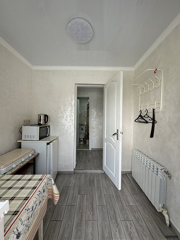 Путешествие с семьейГостеприимноНебольшой уютный отель. Закрытая территория, хозяйка Марина очень гостеприимная. Подает изумительные хычины. У нас был номер на 4. Две отдельные комнаты с хорошими двухспальными кроватями. Идеально чистое постельное белье (что для меня не мало важно). В номере есть холодильник, плита, эл. чайник, посуда т.е все необходимое. Можно заказывать еду у хозяйки. Её лагман вкуснейший из тех, что я ела. Очень советую попробовать.