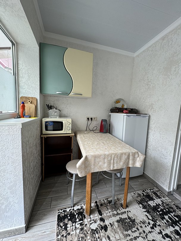 Комната: 2 отдельные кровати или одна двухспальная, ТВ-цифровое, wi-fi, диван, санузел (душевой поддон), мини-кухня посудой, газовая печь, микроволновка, эл.чайник, холодильник, стол.