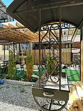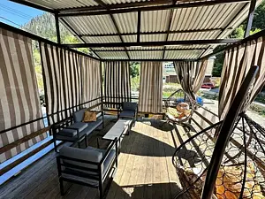 Обустроенная территория отеля оснащена мангальной зоной с крытой террасой.