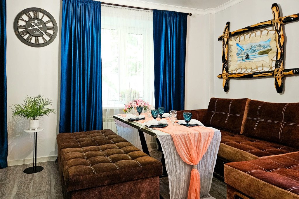 Выбор туристов, путешествующих с семьёй: апартаменты «Апартаменты SkiDombay» располагаются на Домбае. Эти апартаменты находятся в пешей доступности от центра города. Рядом с апартаментами можно прогуляться. Неподалёку: Маятниковая (нижняя), Домбай-1 (нижняя) и Кресельный-1 (нижняя).