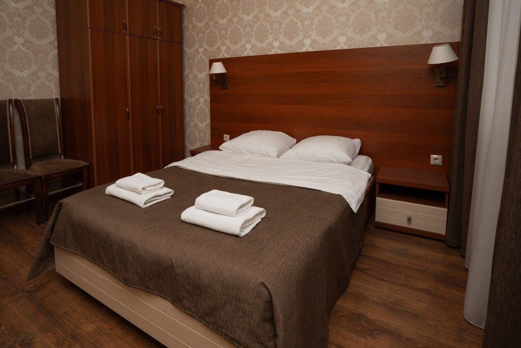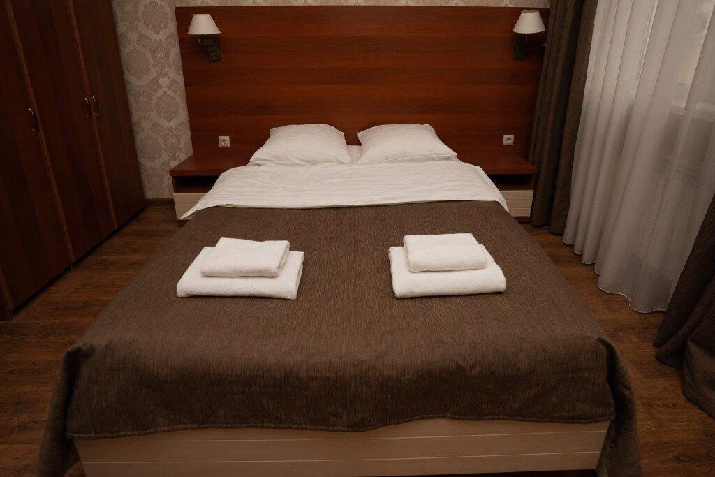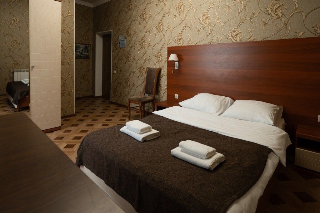 Одна двуспальная кровать, одна диван-кроватьВ гостиничном номере