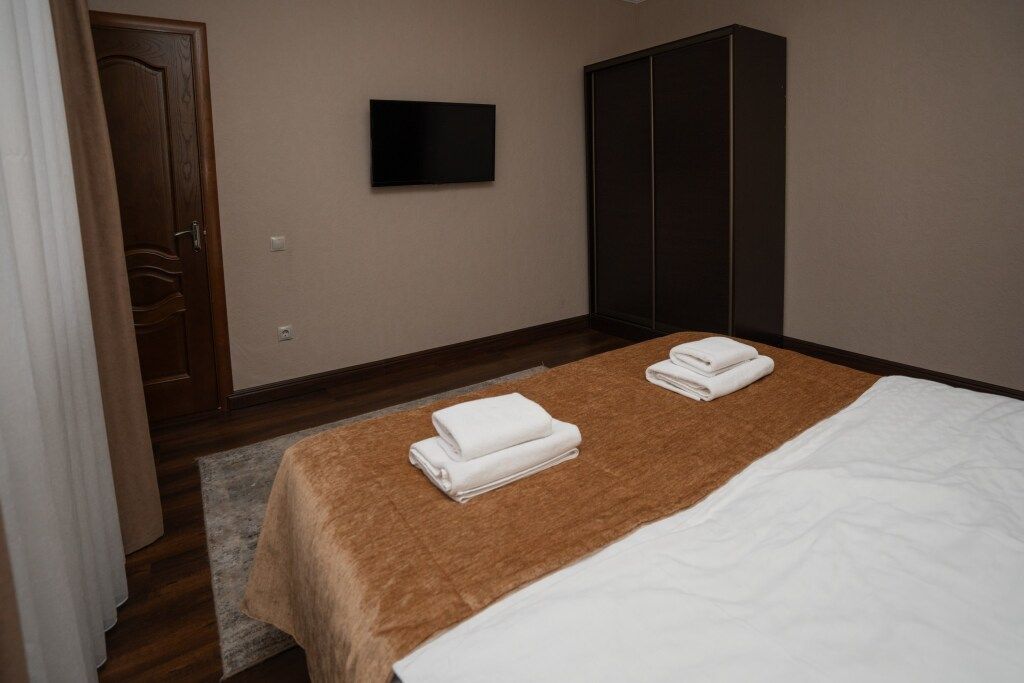 Путешествие с семьейОтель «Снежная королева»Приятный отель. Довольно чисто: ресепшен и коридоры убирают каждый день, в номерах, если на ресепшене с утра попросить. Если что-то необходимо (посуда, одеяло, полотенце заменить, шампунь и тд), на ресепшене все организуют. Персонал приветливый. Мы были в июле, проживающих очень мало, было тихо. Номер двухкомнатный, все в хорошем состоянии, постельное чистое, состояние нового, чайник, стаканы, холодильник, по телевизору можно посмотреть местное ТВ. Мы белыми перчатками номер не проверяли, нас все устроило)) В отеле есть свой ресторан. Работал с 8 утра. Очень вкусно, ребенок ел все, муж был сытый. Самые вкусные в поселке шорпа, лагуна и чечевичный суп. Хычины тоже хороши. Обычно мы в отеле завтракали и уходили в горы. Реже обедали и ужинали, интересно было попробовать в других ресторанах. Цены стандартные по поселку.