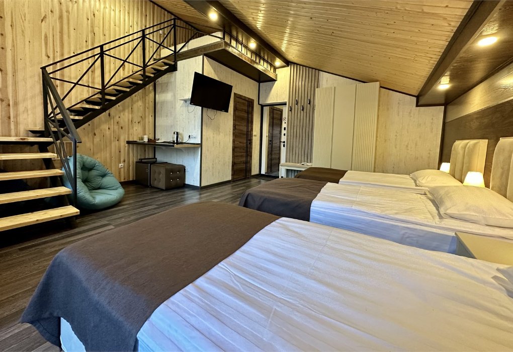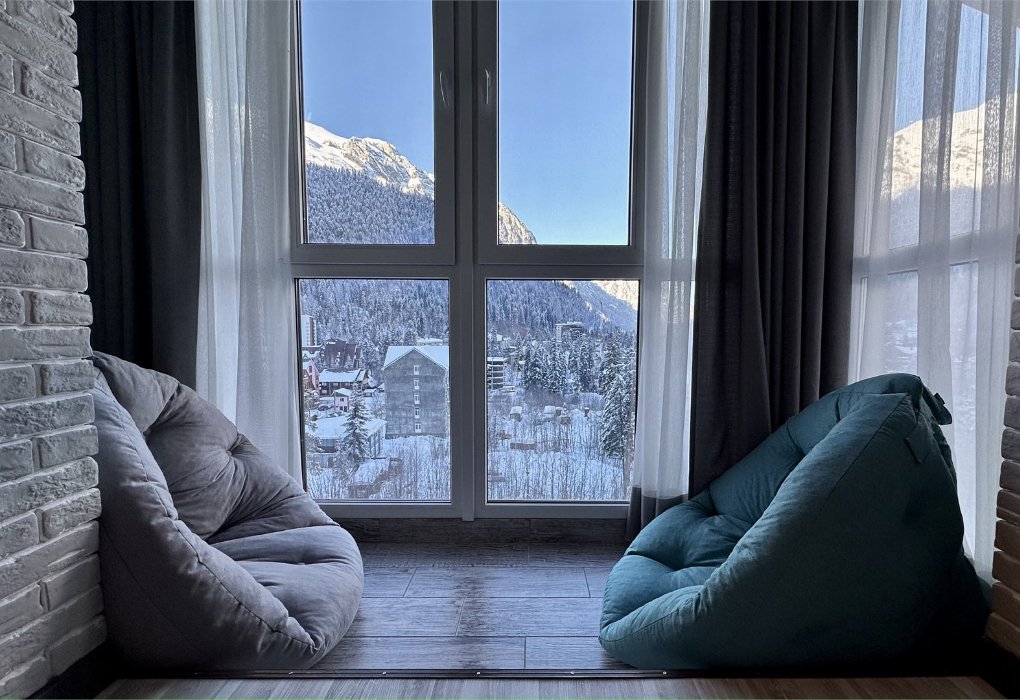 Просторные двухуровневые номера с потрясающим видом на горы, расположены на 5 этаже