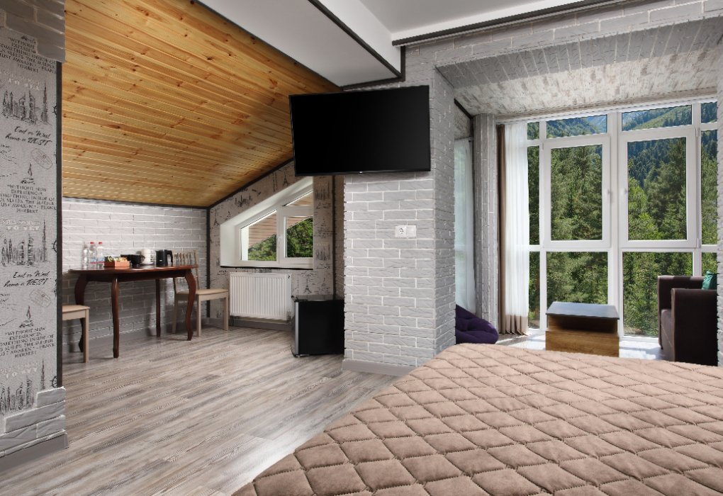 Просторные номера с панорамным видом на горы, расположены на 2, 3 и 4 этажах
