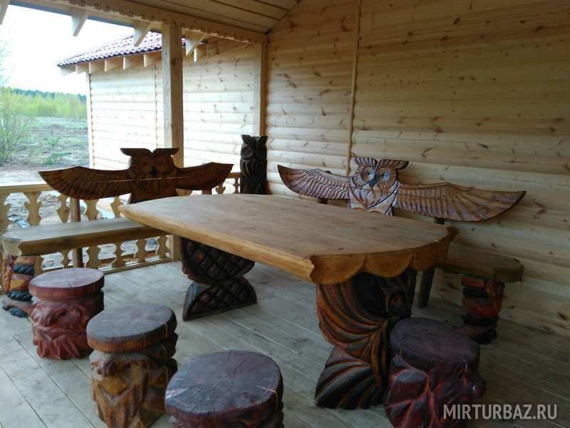 Домик отлично подходит для небольших компаний или одной семьи. Он уютен и достаточно просторен чтобы не чувствовать себя в тесноте. Домик имеет баню и спальную комнату на втором этаже.