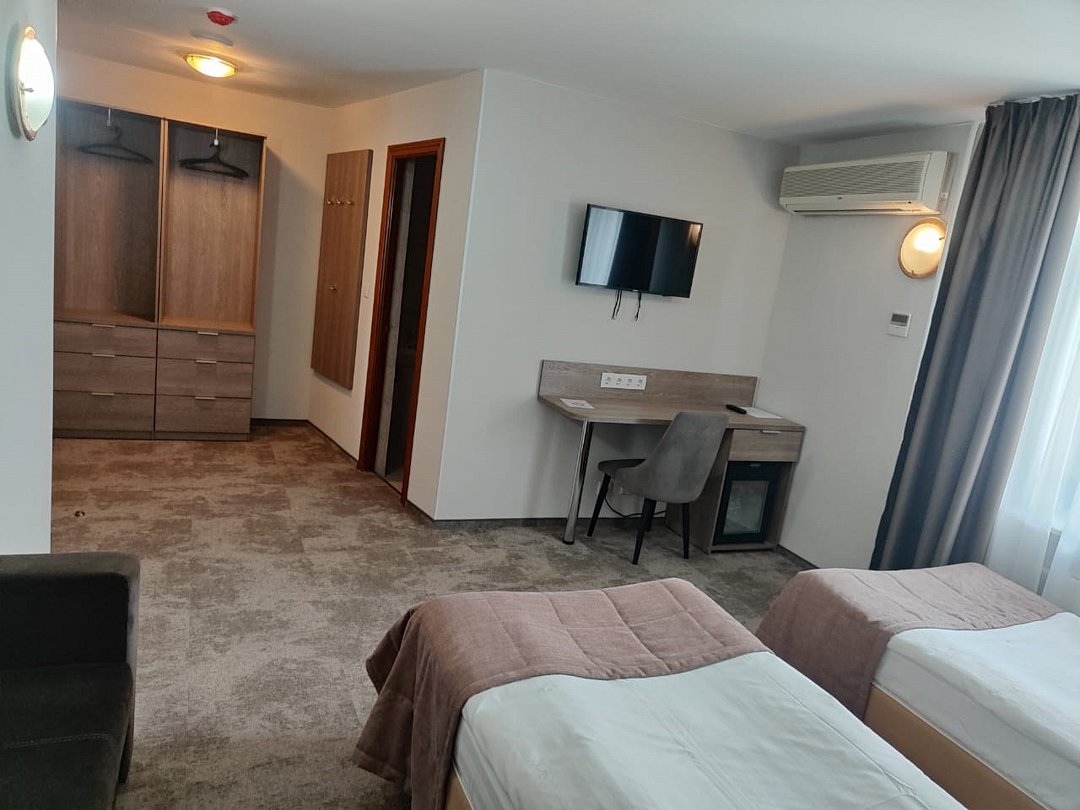 Однокомнатный или двухкомнатный номер с тремя кроватями, либо 2 кровати + раскладывающийся диван. Обновленные номера повышенного комфорта.Услуги и удобства