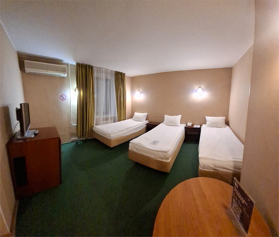 Однокомнатный или двухкомнатный номер с тремя кроватями. В ванной необходимый косметический набор.Услуги и удобства