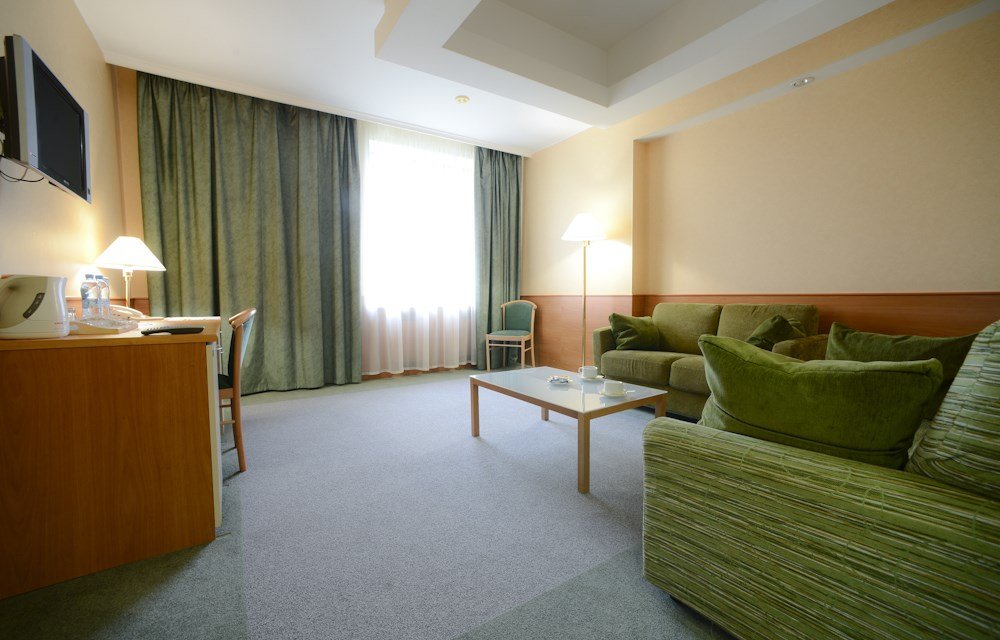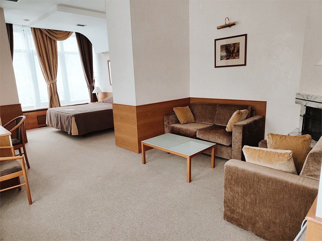 Просторный номер Люкс со спальной и гостиной зоной. Комната оснащена чайной станцией и мини-баром. Площадь номера - 42 кв.м.Услуги и удобства