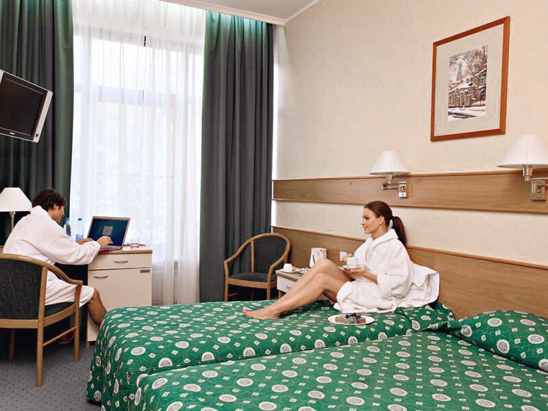 9-ти этажный отель состоит из 2-х корпусов, оснащенных лифтами – стандартного и комфортабельного клубного. Гостей ожидают 299 просторных, светлых номеров категории Эконом, Стандарт и Клубный. Все номера независимо от степени комфорта оборудованы санузлом с ванной или душевой кабиной, в распоряжении отдыхающих необходимая бытовая техника – телевизор, электрочайник, утюг, мини-холодильник, клубные номера оснащены кондиционерами.
