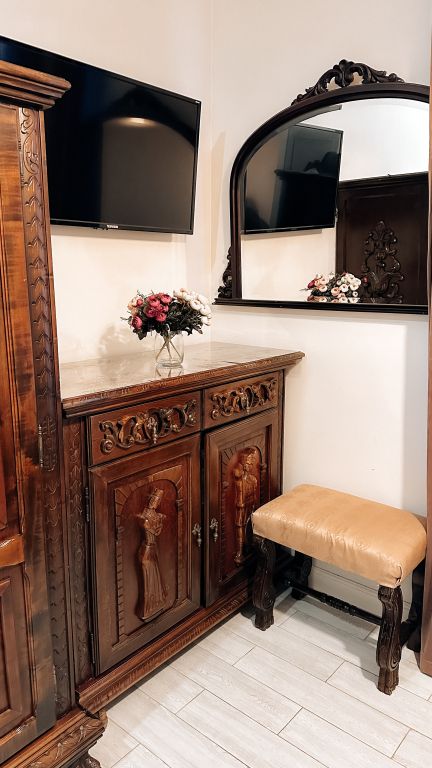 В номере гостей ждут телевизор и халат. Перечисленные услуги есть не во всех номерах.