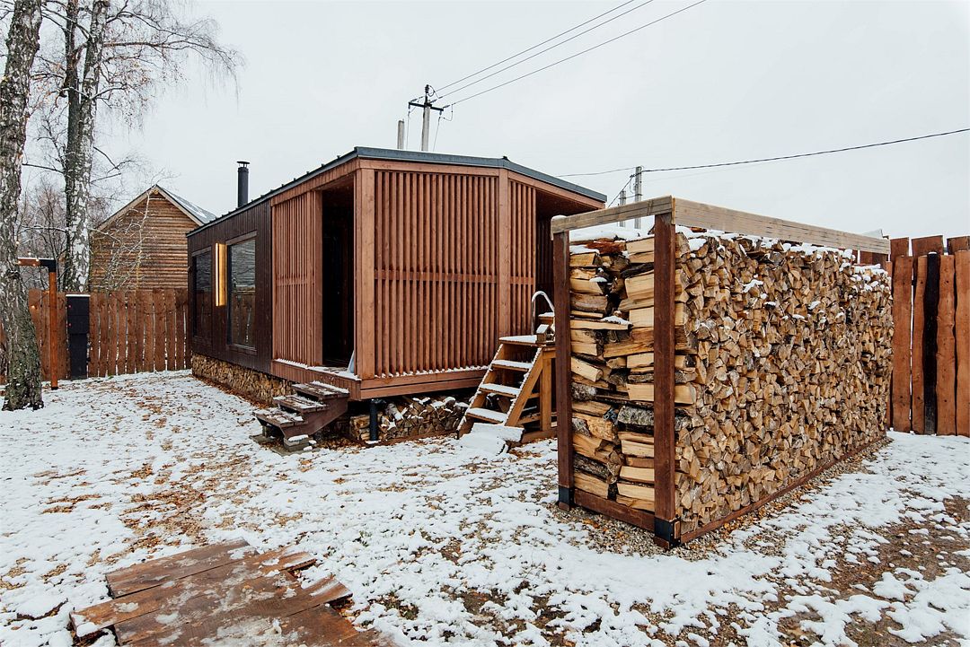 Вместимость — один–два человека. Размер дома — пятнадцать квадратных метров. Открытая терраса с видом на лес — пятнадцать квадратных метров.