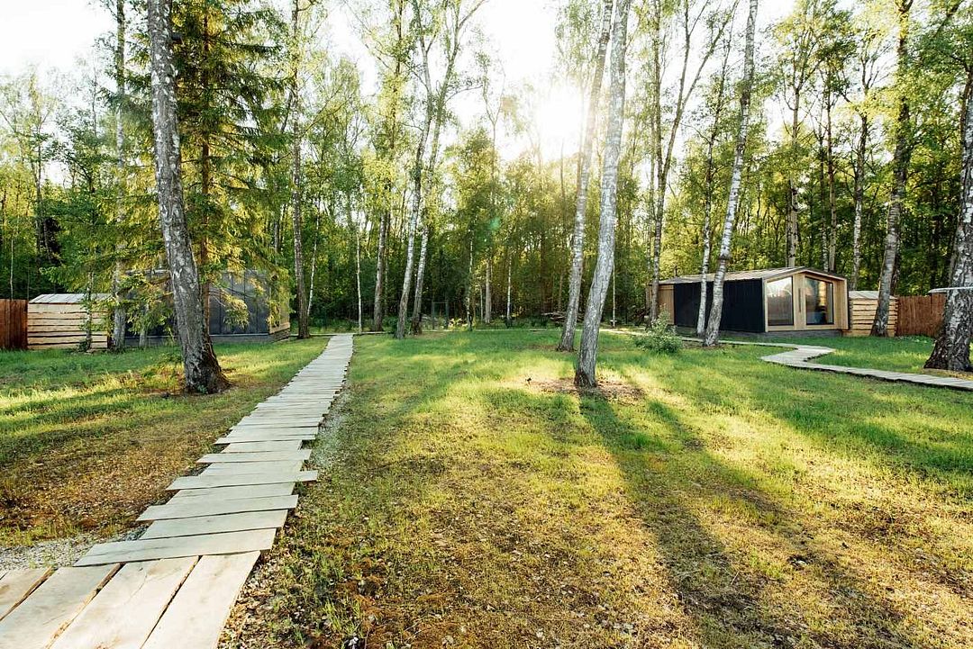 В глэмпинге есть возможность выйти в лес, который прекрасен в любое время года. Весной здесь можно собрать землянику, а также другие ягоды и грибы.