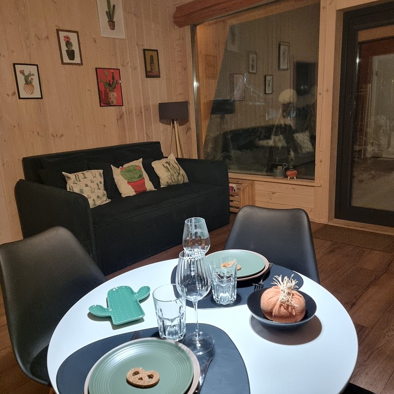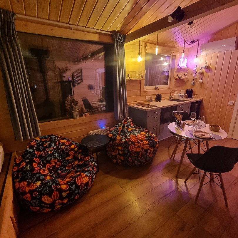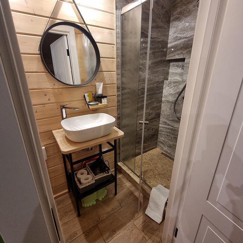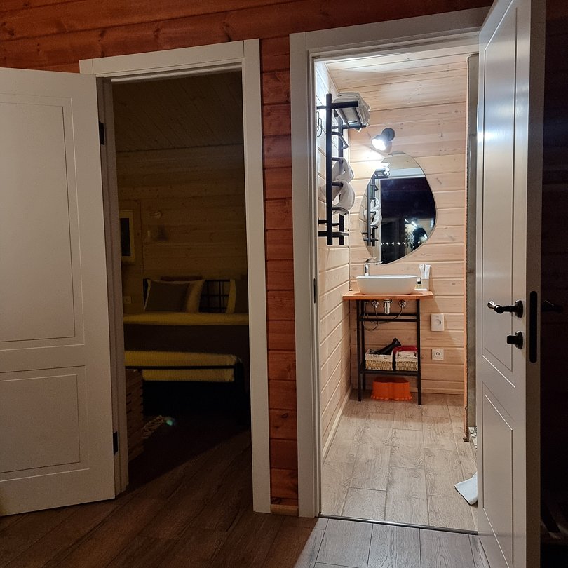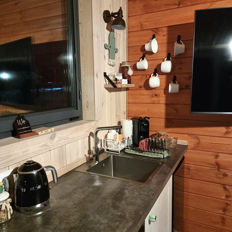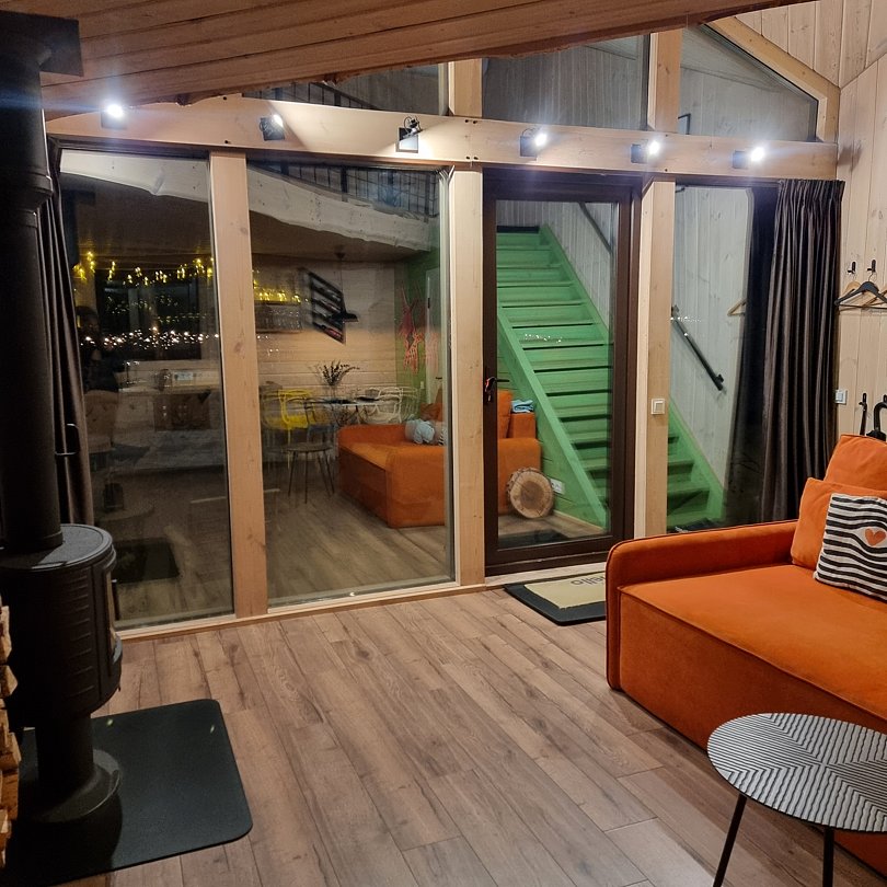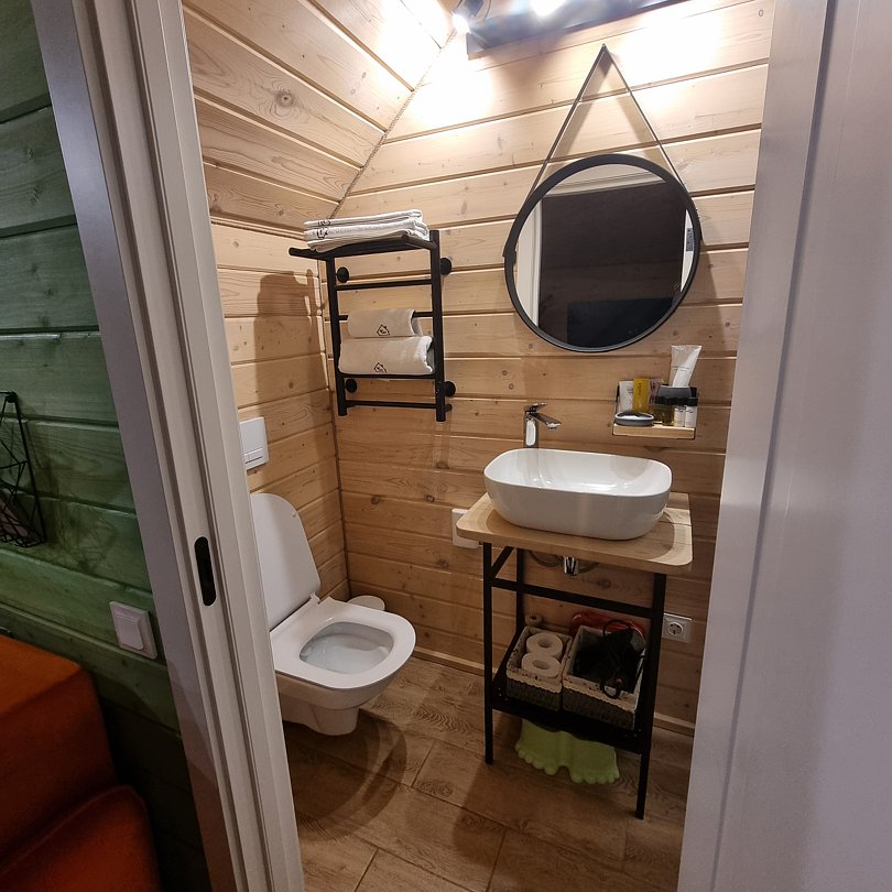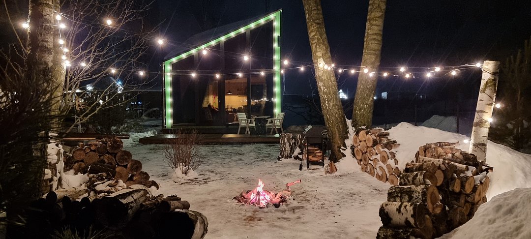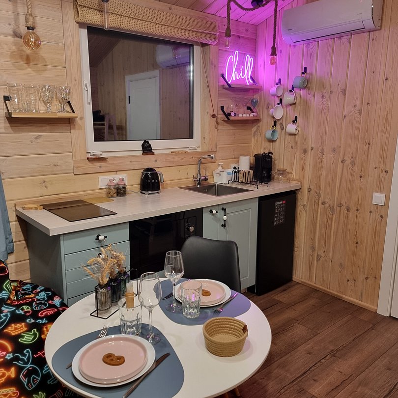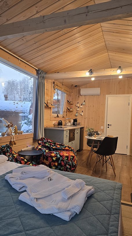 Вас ждёт три уютных домика, в каждом из которых есть полный спектр удобств, привычных современному человеку, что делает проживание максимально комфортным: кухня, техника, Wi-Fi санузел и удобная мебель. А стильный интерьер и панорамный вид из окна добавят отдыху эстетики.