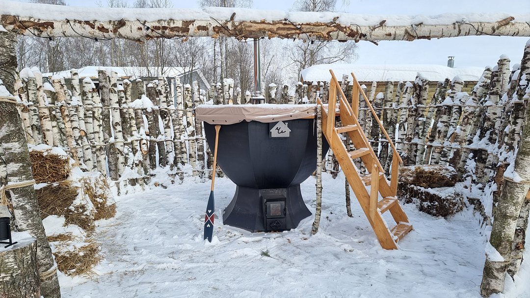 Рядом с каждым домиком есть чан и собственная банька, доступные за дополнительную плату.