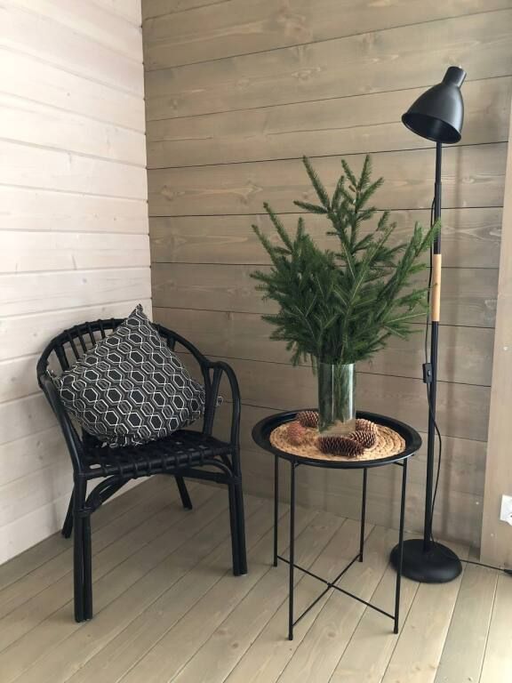 В доме две спальни, кухня-гостиная с печью-камином, веранда. Здесь могут разместиться от 2 до 5 гостей. Дом имеет панорамные окна.