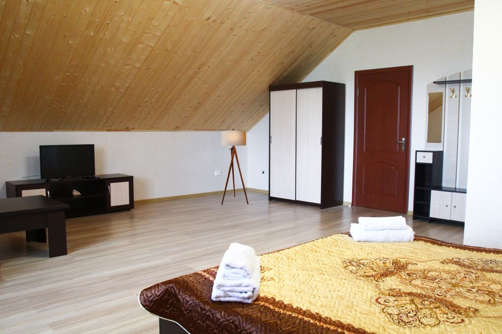 К услугам гостей бесплатный доступ к сети Wi-Fi и бесплатная охраняемая парковка у ворот. Так же на первом этаже есть укомплектованная кухня. Все комнаты оборудованы телевизором с плоским экраном, имеется собственная ванная комната с душем.