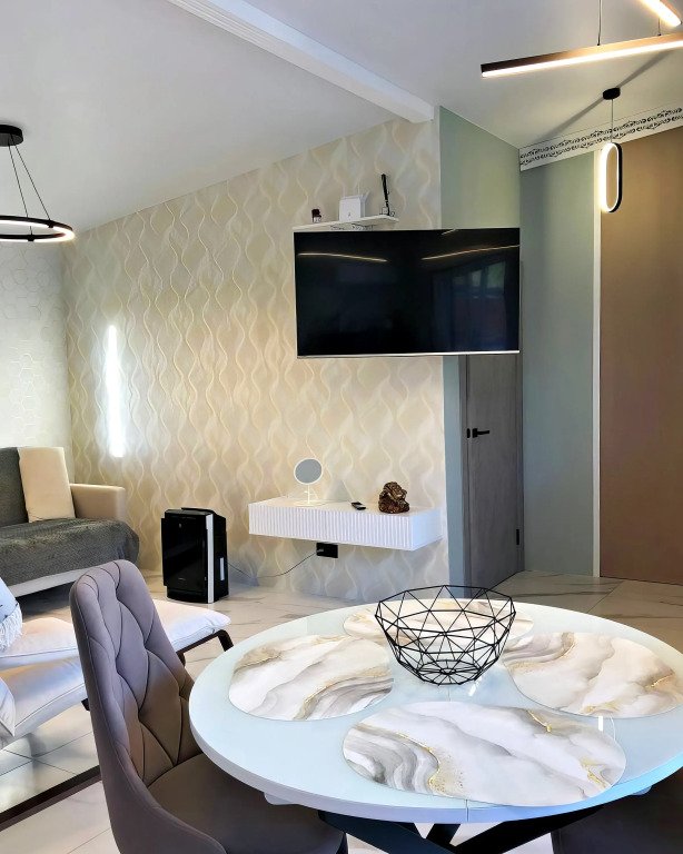 В номере вы найдёте телевизор. Оснащение зависит от выбранной категории номера.