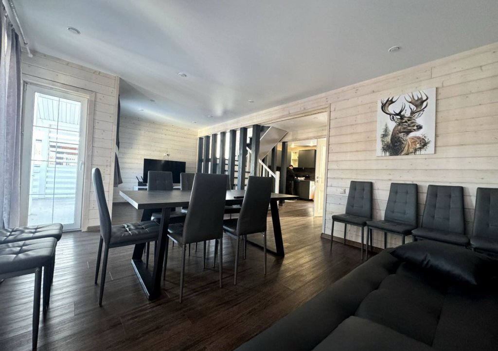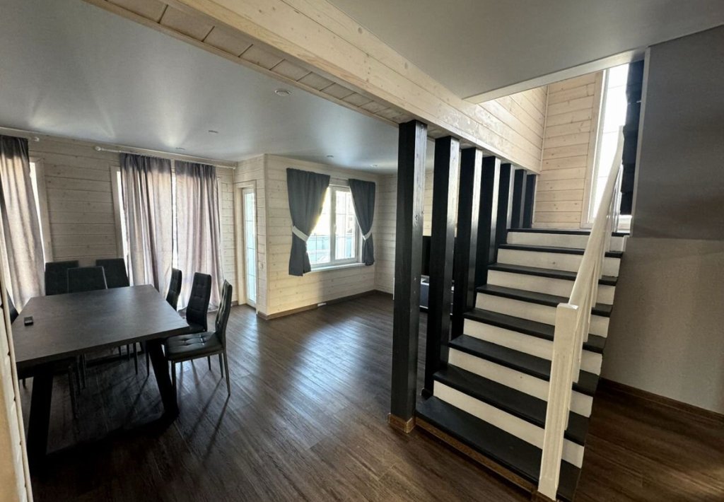 Что ждёт гостей: дизайнерский ремонт, терраса на первом этаже с выходом из кухни-гостиной, спальни на втором этаже. Вместимость дома — до 10 человек; дом подходит для семейных встреч или дружеских праздников.