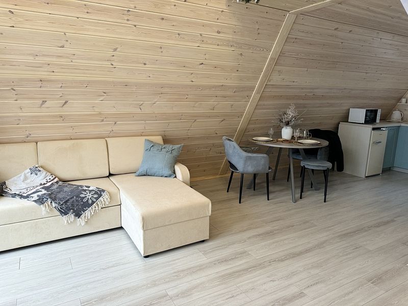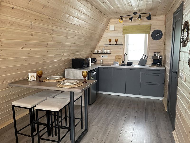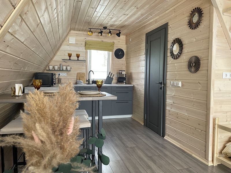 Вас ждут уютные дома, оснащённые всеми удобствами, необходимыми для комфортного проживания: милой кухней-гостиной, зоной SmartTV, Wi-Fi, санузлом с душем и потрясающим видом из панорамных окон.