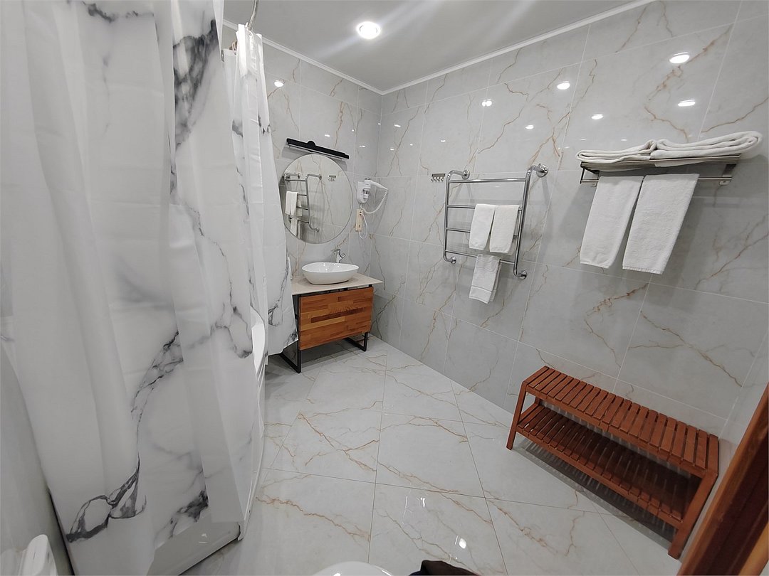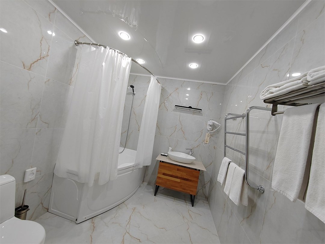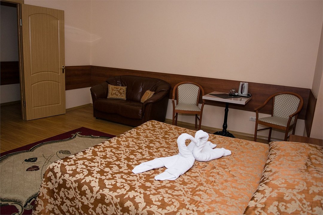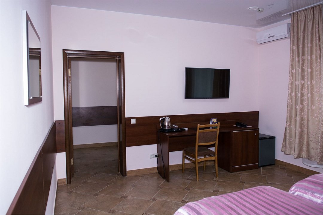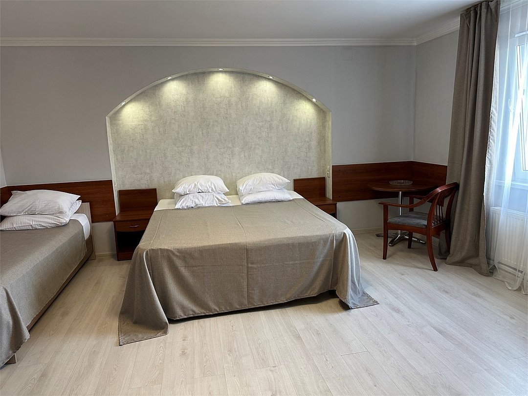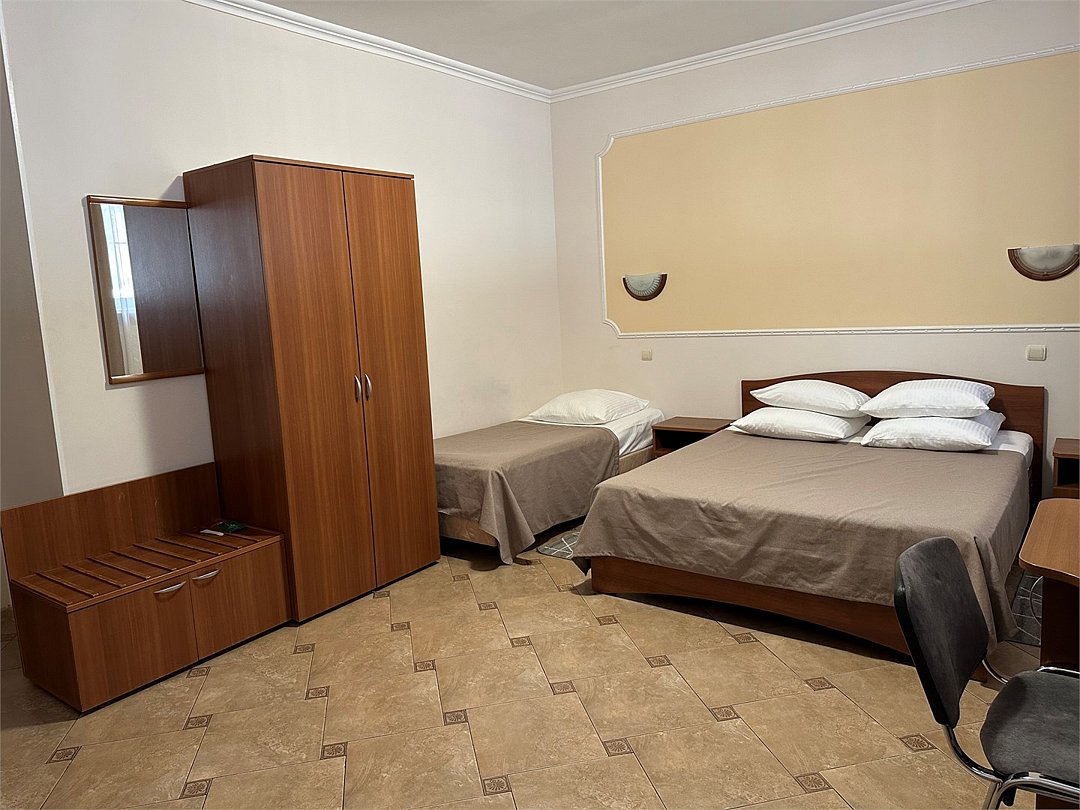 Вместимость: до 3 гостей (2 на основных местах + 1 на дополнительном месте) Просторный, однокомнатный или двух комнатный номер с двухспальной кроватью оформленный в современном стиле, со всеми удобствами для полноценного и комфортного отдыха. Система кондиционирования воздуха Современная противопожарная система Шкаф Телефон Бесплатный Wi-Fi доступ в интернет Ванная Комплект полотенец Косметические принадлежности Фен Холодильник Шторы для полного затемненияУслуги и удобства