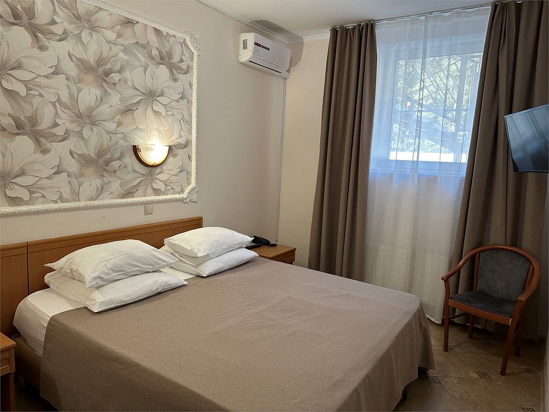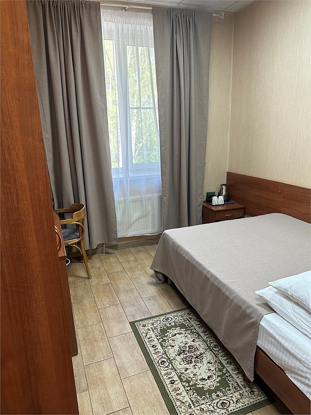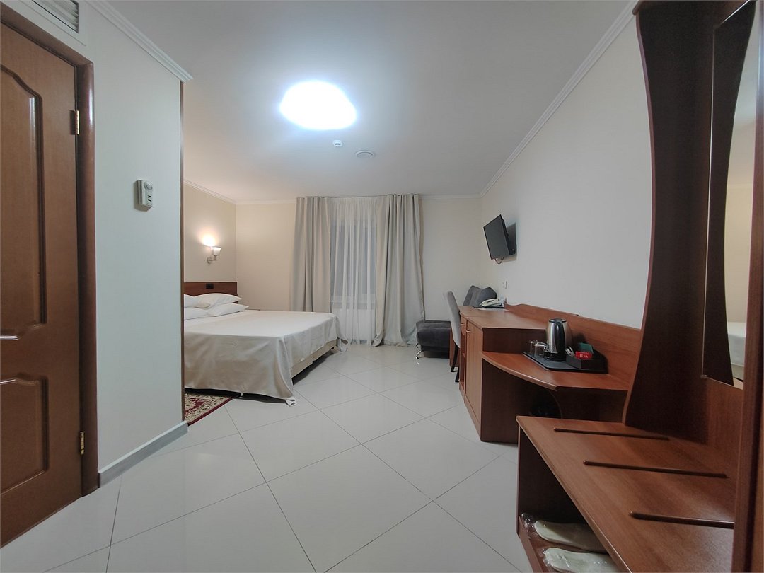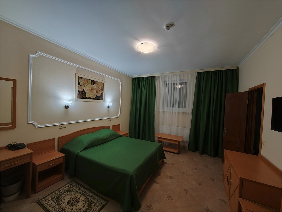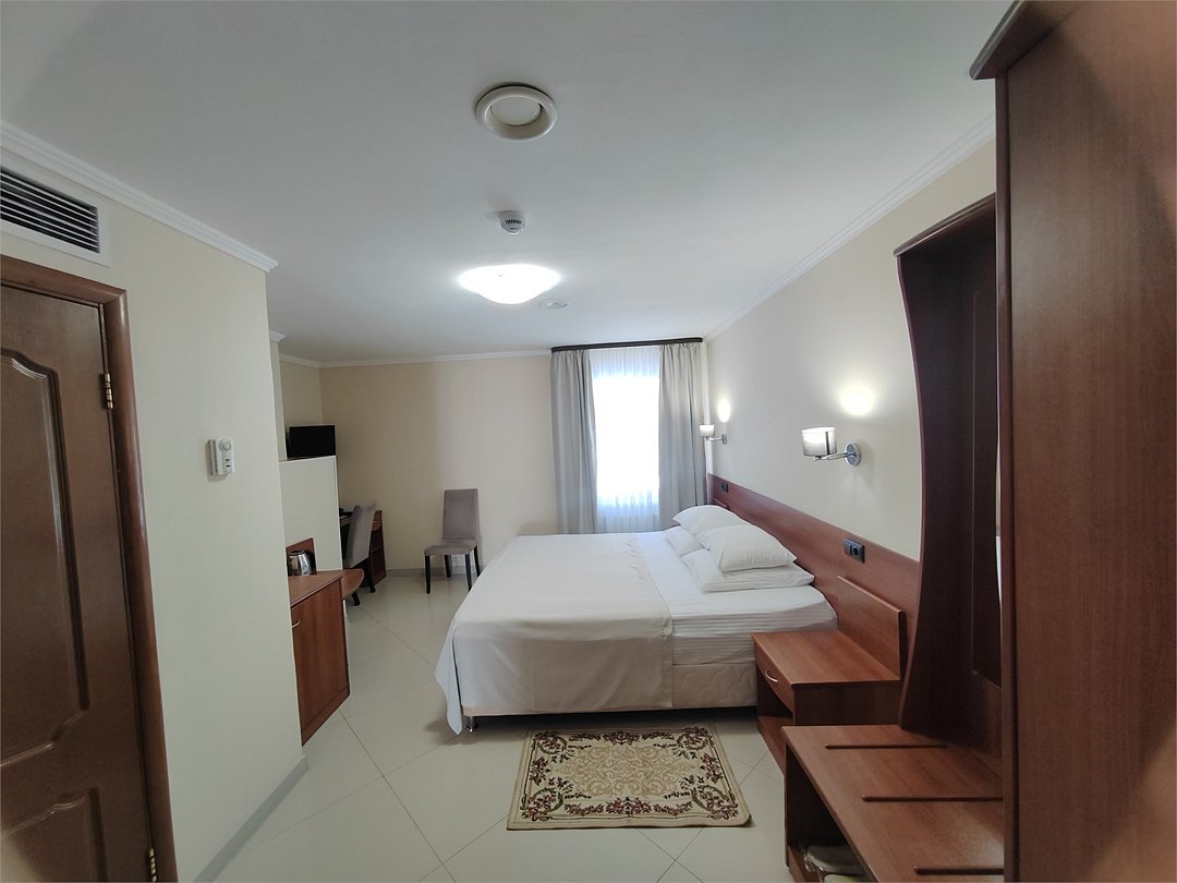 Вместимость: до 2 гостей Номер с одной двухспальной кроватью . В номере созданы все необходимые условия для комфортного проживания в приятной обстановке. Современная противопожарная система Шкаф Телефон Бесплатный Wi-Fi доступ в интернет Душ Комплект полотенец Косметические принадлежности Фен Холодильник Шторы для полного затемненияУслуги и удобства
