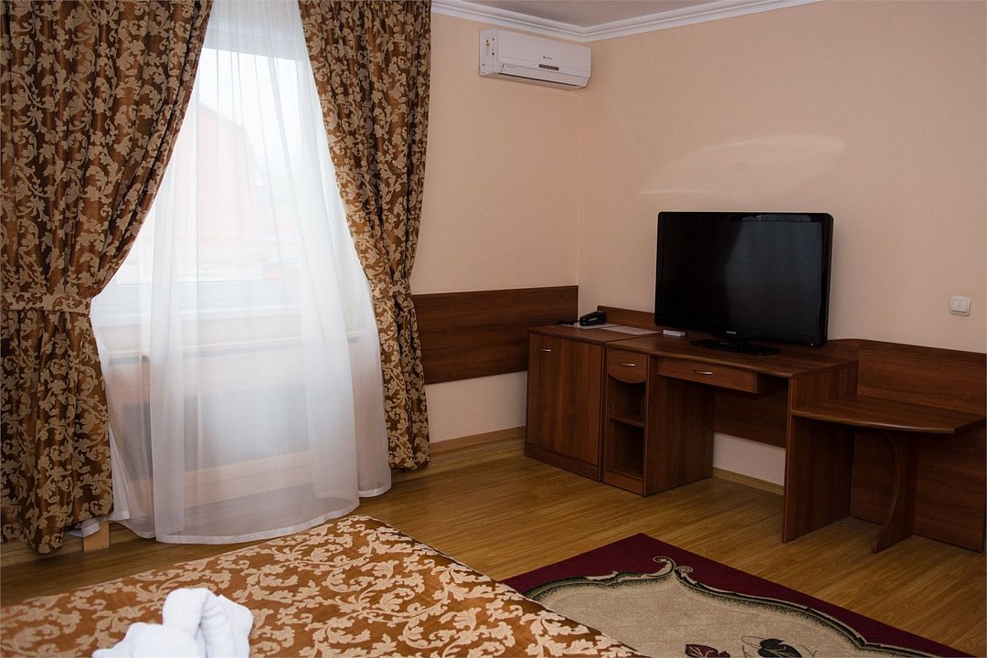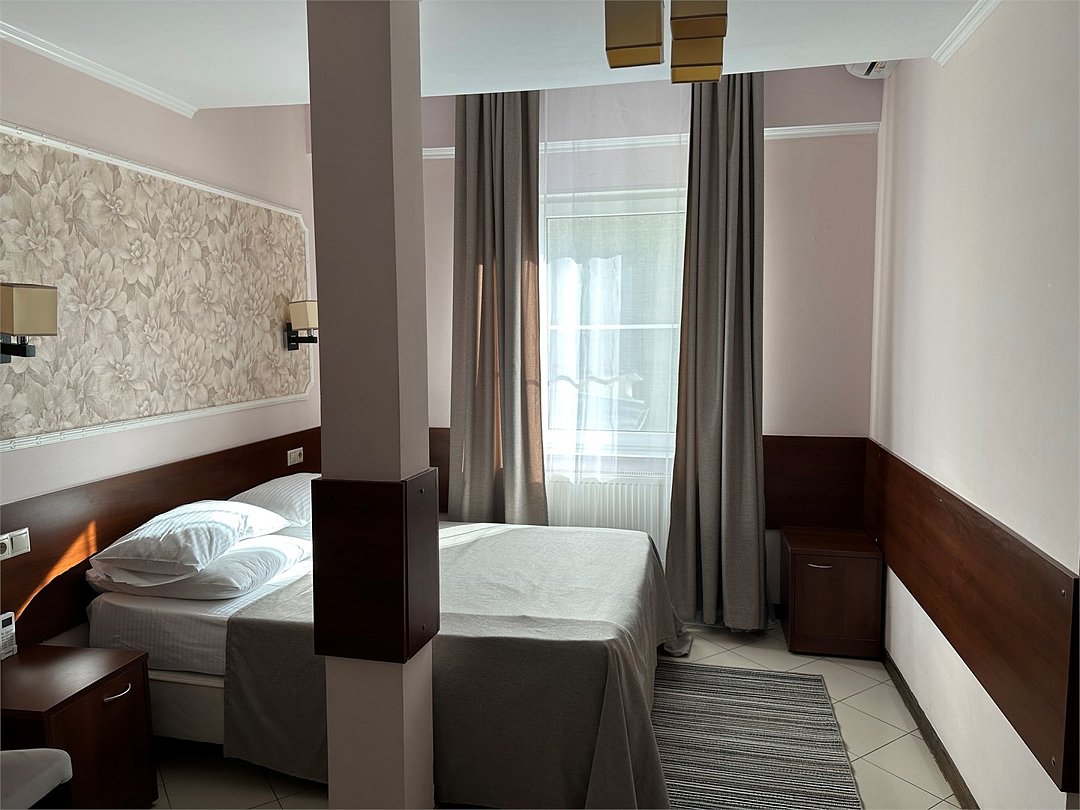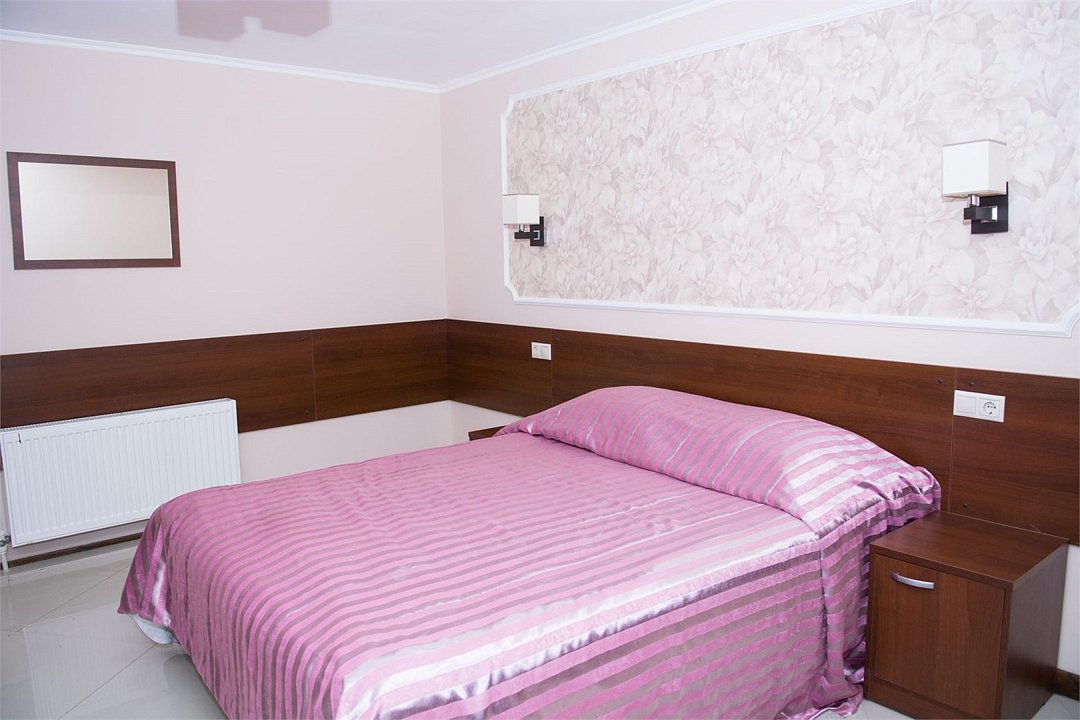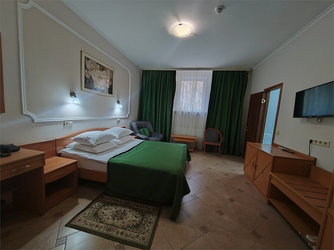 Вместимость: до 2 гостей Номер с одной двухспальной кроватью . В номере созданы все необходимые условия для комфортного проживания в приятной обстановке. Современная противопожарная система Шкаф Телефон Бесплатный Wi-Fi доступ в интернет Душ Комплект полотенец Косметические принадлежности Фен Холодильник Шторы для полного затемненияУслуги и удобства