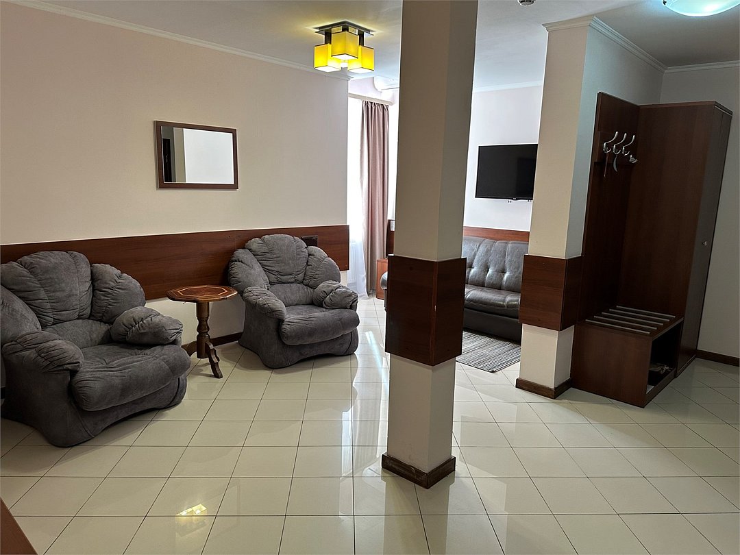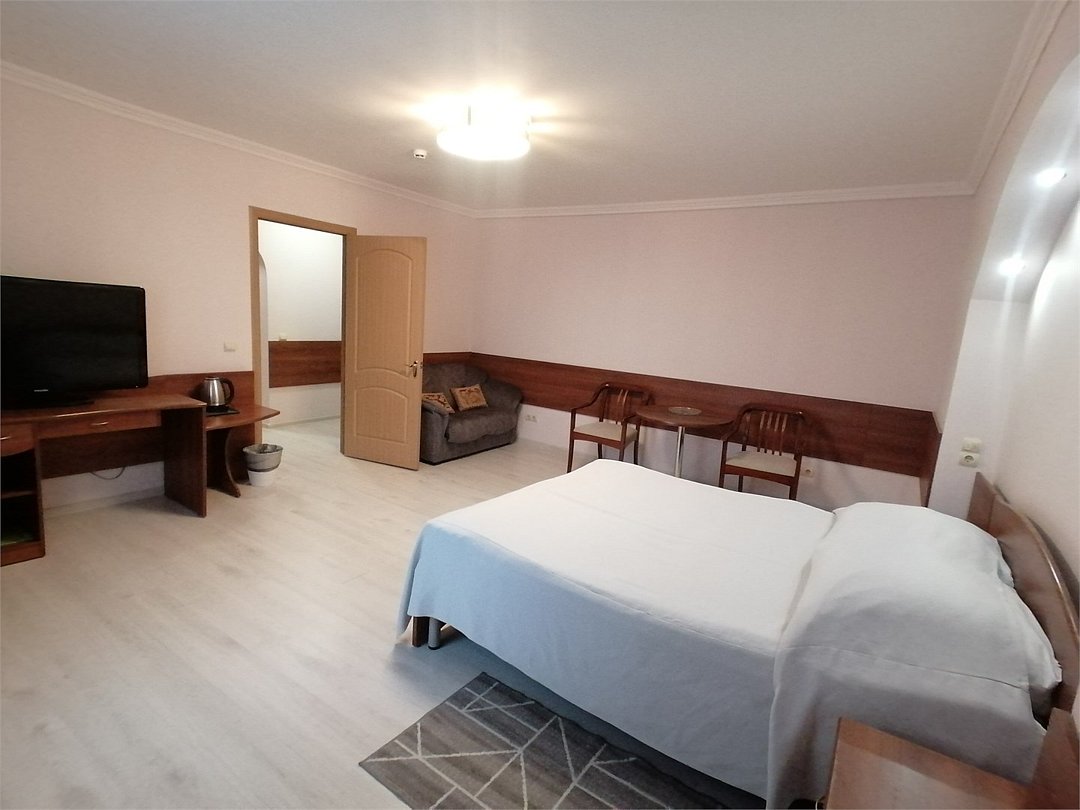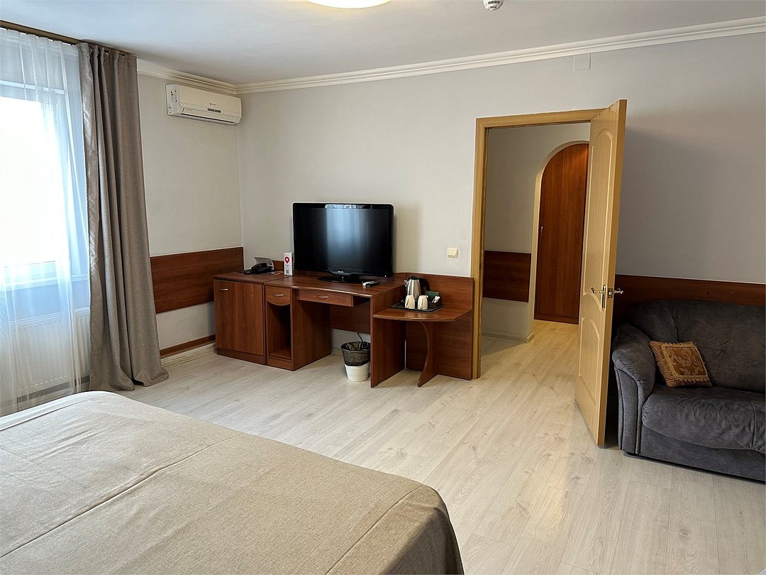 кабельное телевидение, Wi-Fi, кондиционер, светильник, фен, электронные замки, ванна, санузел, банные принадлежности, банные полотенца, тапочки, лоджия, диван, кресла, стулья, шкаф для одежды, вешалки, письменный стол, зеркало, две комнаты, чайник, унитаз, раковина, кулер на этаже, вид во двор, стаканы, столовые приборы, стул, стол, туалетные средства, туалет, вид на парк, раскладной диван, внутренний телефон, телевизор с плоским экраном, мини-холодильник, можно с питомцамиВ номере