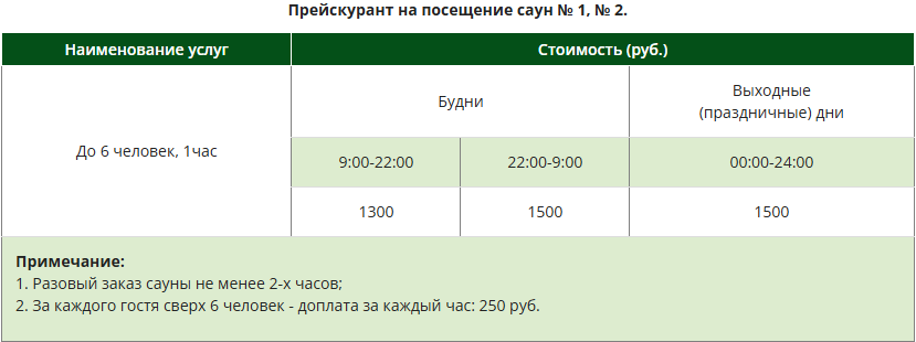 В комплексе имеются три отдельные сауны. Комфортный отдых в каждой из которых предполагает посещение до 6 человек.
