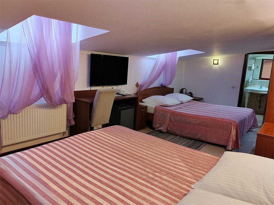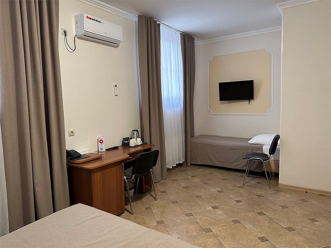 Вместимость: до 3 гостей (2 на основных местах + 1 на дополнительном месте в некоторых номерах) Номер с двумя кроватями (возможно дополнительное место) со всеми необходимыми удобствами для комфортного проживания Система кондиционирования воздуха Современная противопожарная система Шкаф Телефон Бесплатный Wi-Fi доступ в интернет Душ или ванная Комплект полотенец Косметические принадлежности Фен Холодильник Шторы для полного затемненияУслуги и удобства
