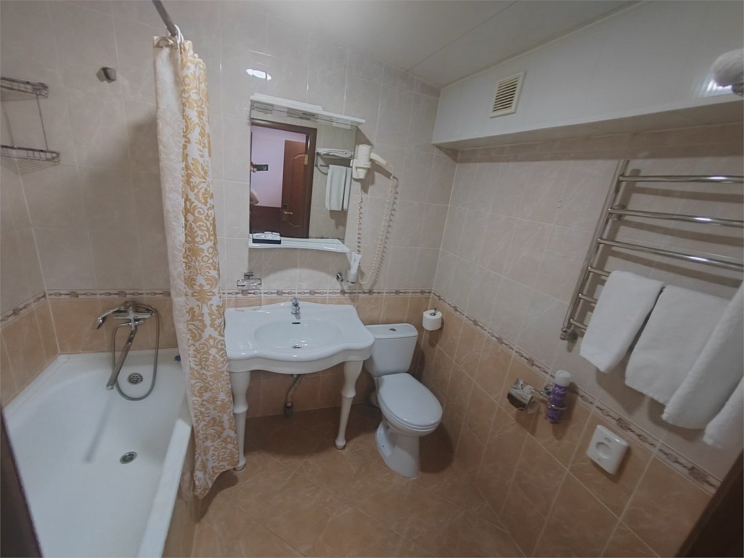 кабельное телевидение, Wi-Fi, кондиционер, светильник, фен, электронные замки, ванна, санузел, банные принадлежности, банные полотенца, косметические средства, диван, стулья, шкаф для одежды, вешалки, письменный стол, зеркало, чайник, унитаз, раковина, душ, кулер на этаже, вид во двор, стаканы, столовые приборы, стул, стол, туалетные средства, туалет, вид на парк, раскладной диван, внутренний телефон, телевизор с плоским экраном, мини-холодильник, гостиничная парфюмерия, можно с питомцамиВ номере