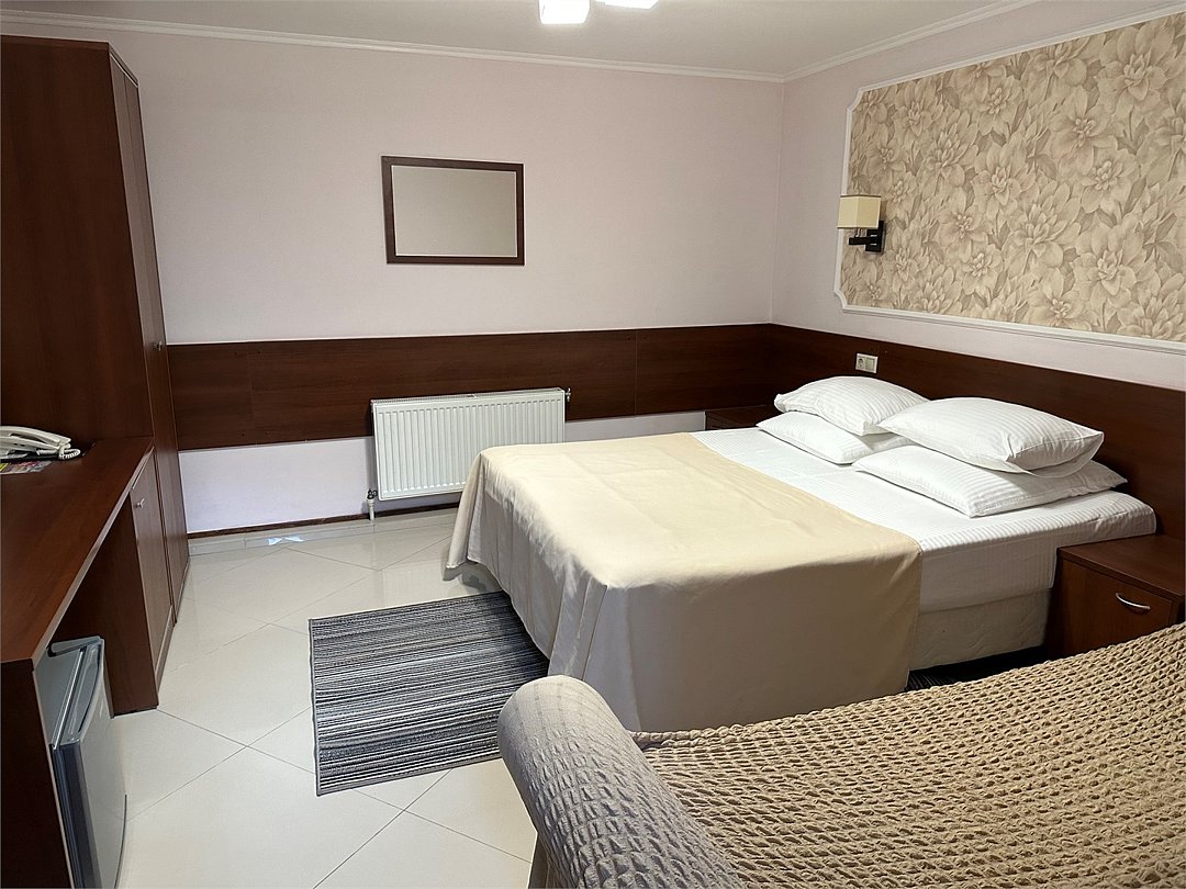 Номер с двумя кроватями со всеми необходимыми удобствами для комфортного проживания Современная противопожарная система Шкаф Телефон Бесплатный Wi-Fi доступ в интернет Душевая кабина Комплект полотенец Косметические принадлежности Фен Шторы для полного затемненияУслуги и удобства