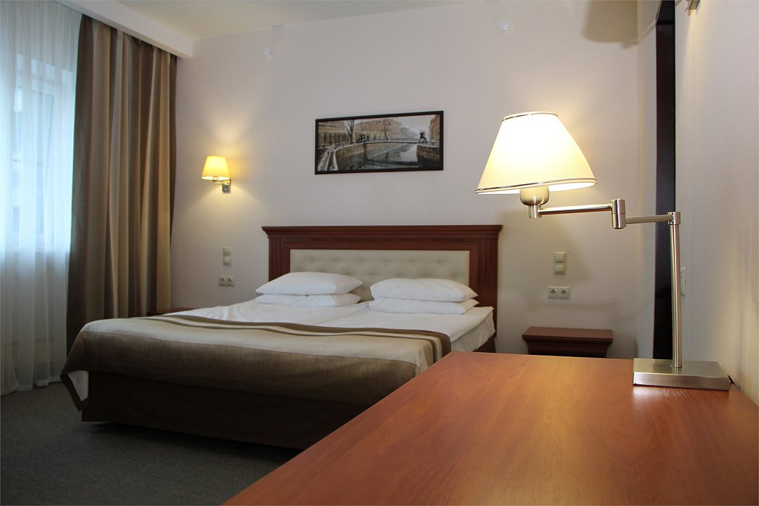 Комфортный номер категории «стандарт», создан для гостей, предпочитающих функциональность. Идеален, при одноместном и двухместном размещении. Вся обстановка располагает к неспешному отдыху.Услуги и удобства