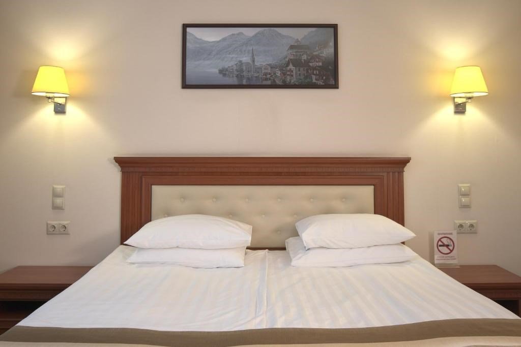 спутниковое телевидение, Wi-Fi, кондиционер, светильник, фен, система безопасности, электронные замки, обогреватель, ванная комната, душевая кабина, санузел, халаты, банные полотенца, тапочки, гигиенические средства, косметические средства, две односпальные или большая двуспальная кровать, ортопедический матрас, тумбы, стулья, вешалки, письменный стол, багажная тумба, зеркало, сейф, унитаз, раковина, косметическое зеркало, ковровое покрытие, отопление, душ, кулер на этаже, центральное кондиционирование, вид во двор, стаканы, туалетные средства, внутренний телефон, телевизор с плоским экраном, мини-холодильник, москитная сетка, шкаф-купе, номер для некурящих, вид на лесВ гостиничном номере