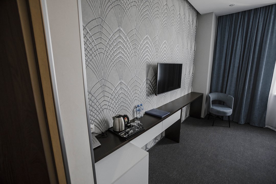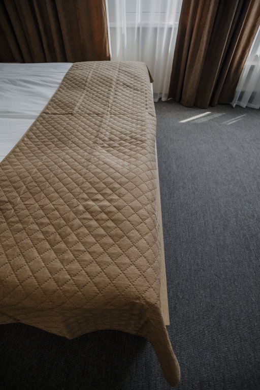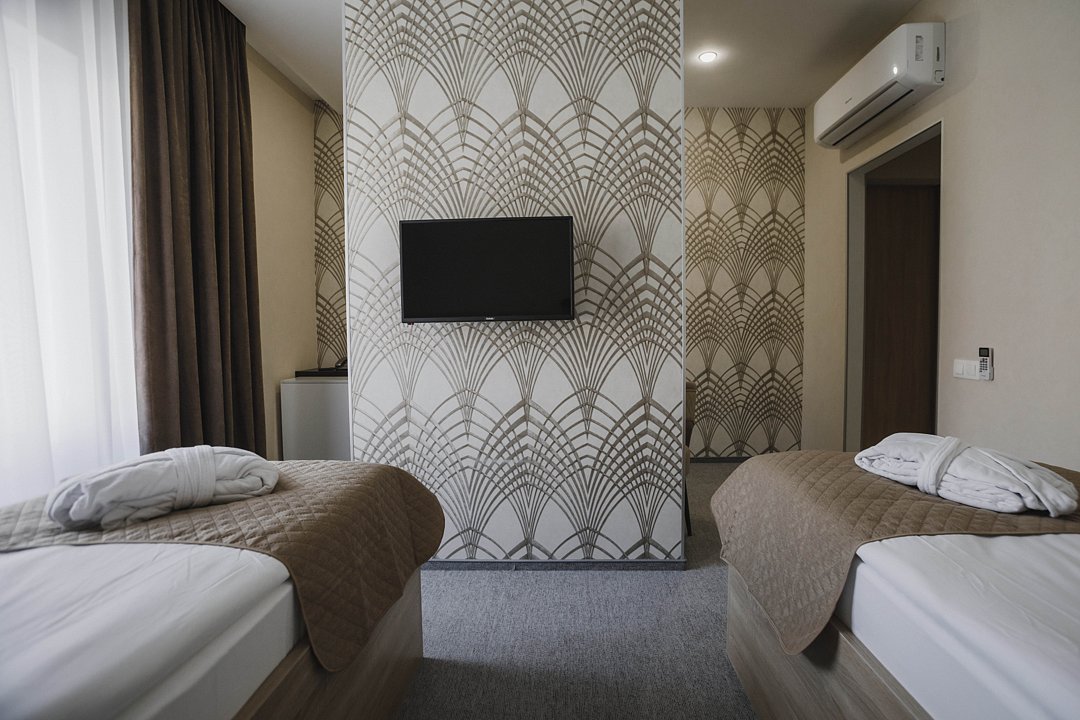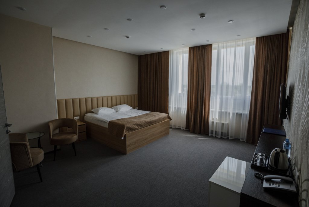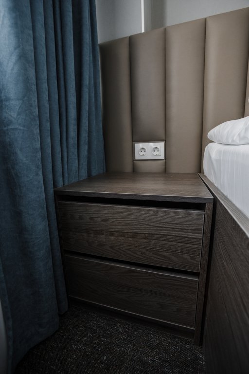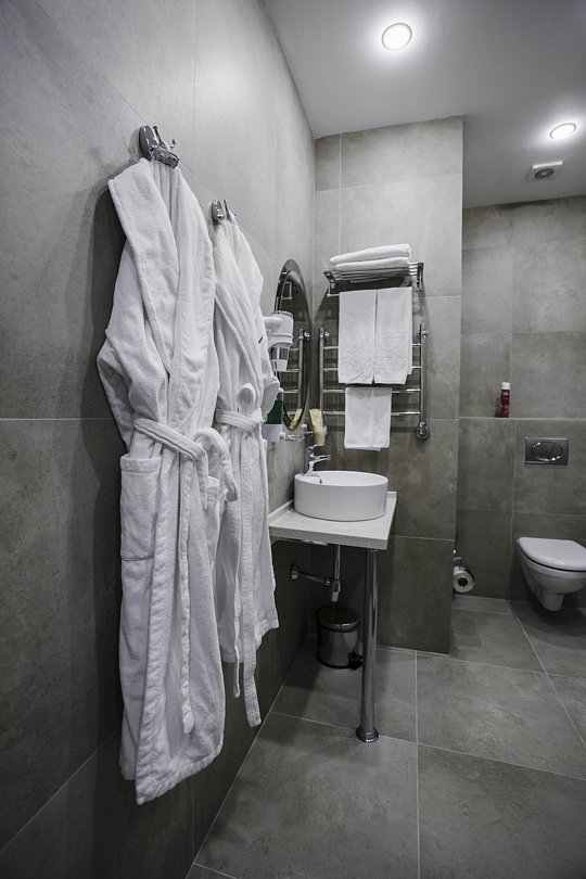 В номерах категории стандарт возможно как одноместное так и двухместное размещение. Номера этой категории прекрасно подойдут для командировок или просто отдыха после работы. В номерах есть все необходимое для комфортного проживания: халаты, тапочки, туалетно-косметические принадлежности, комплект полотенец, чайный набор, бутилированная вода, кондиционер, фен и сейф и конечно же отличный wi-fi.