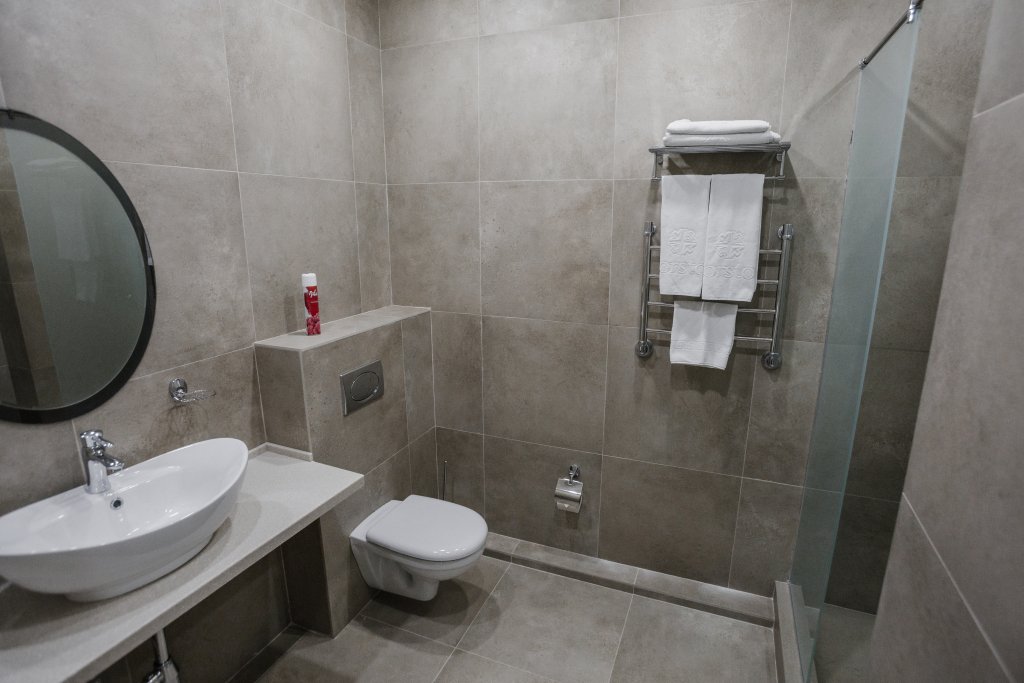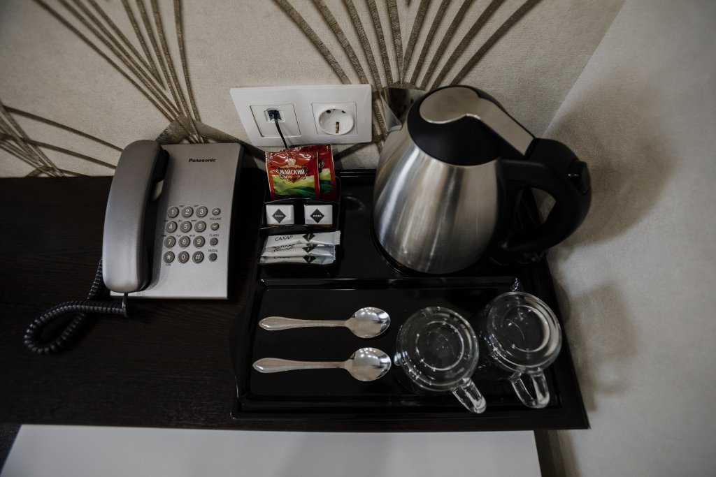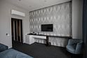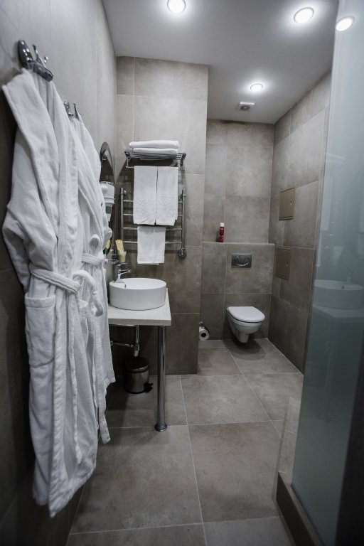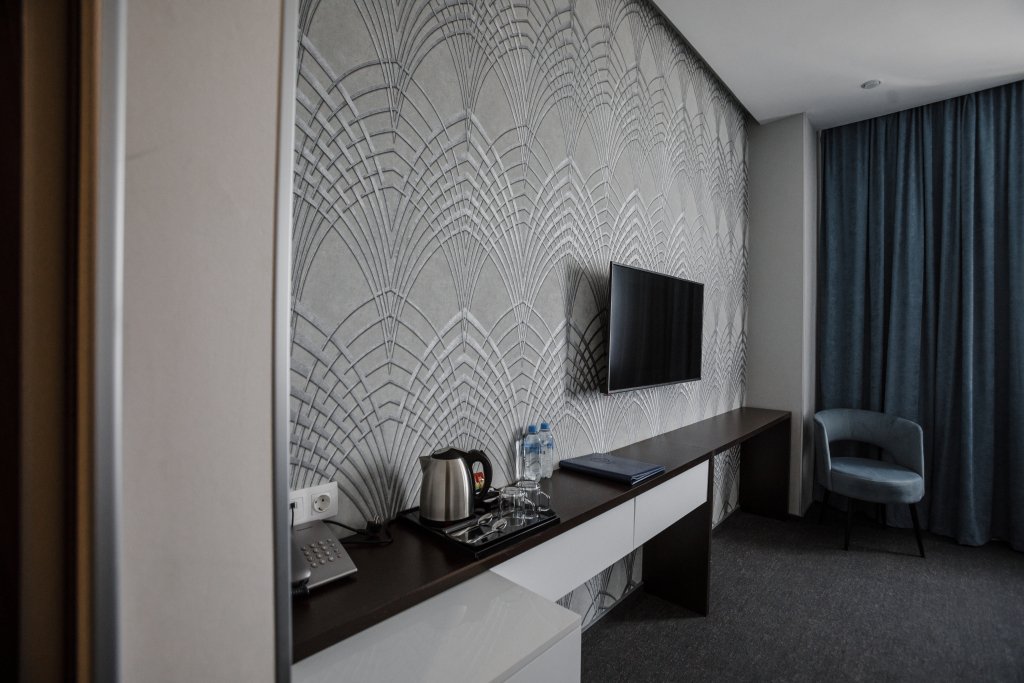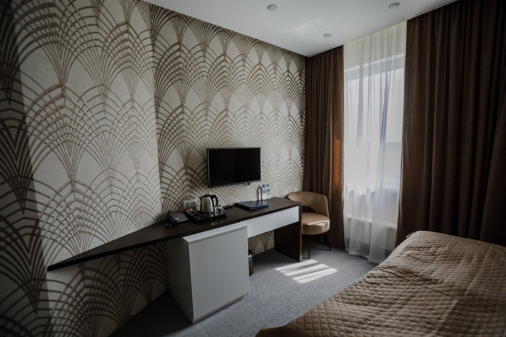 В номерах категории стандарт возможно как одноместное так и двухместное размещение. Номера этой категории прекрасно подойдут для командировок или просто отдыха после работы. В номерах есть все необходимое для комфортного проживания: халаты, тапочки, туалетно-косметические принадлежности, комплект полотенец, чайный набор, бутилированная вода, кондиционер, фен и сейф и конечно же отличный wi-fi.