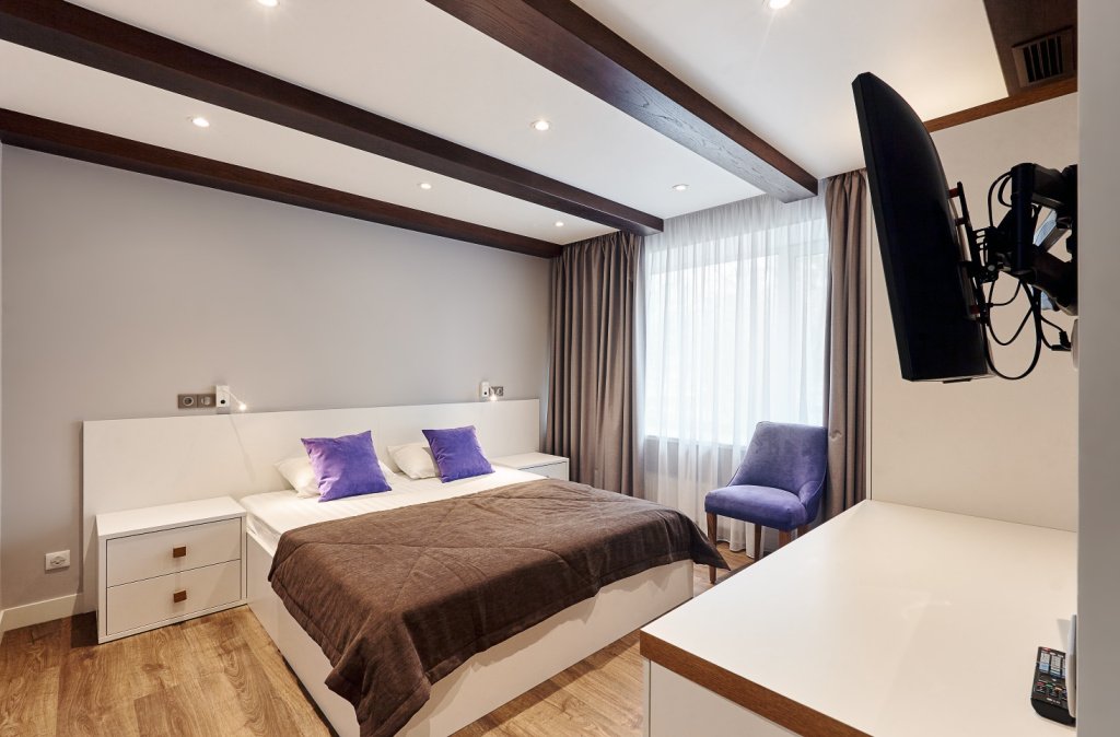 Современный однокомнатный номер с оригинальной дизайнерской отделкой, подойдет для одно- или двухместного размещения. Здесь будет комфортно как семейной паре, так и гостям, желающим провести время в дали от городской суеты.Услуги и удобства