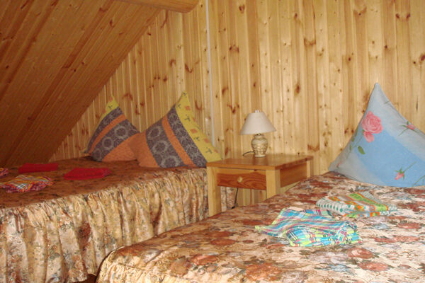 В доме есть все необходимое, чтобы разместиться небольшой компанией. На 1 этаже есть 2 двухместных номера и небольшая гостинная, на 2 этаже есть место для дополнительных кроватей.