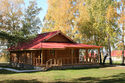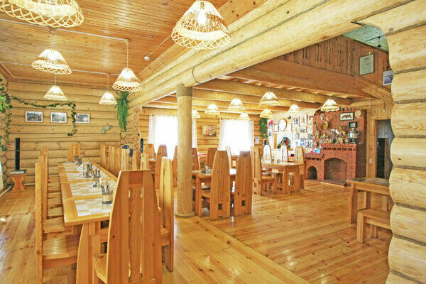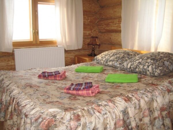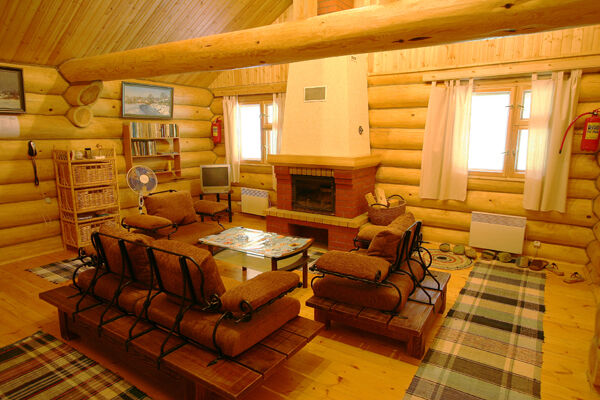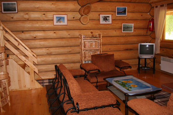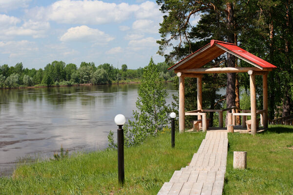 Территория базы отдыха находится в лесу, на берегу реки. Места живописные. Проживание в домиках из оцилиндрованного бревна, очень уютных и комфортных, туалетная комната в номере. В домике все предусмотрено до мелочей, чайник, заварка, столовые приборы, холодильник, даже книги для чтения. Правда, очень высокая слышимость. Питание трехразовое в отдельной избе-столовой. Предлагают "шведский стол" по домашнему-вкусный и сытный (присутствуют лесные дары). Есть бар, в котором предлагают пиво и ВКУСНЕЙШУЮ рыбу! На территории много беседок, оборудованы места для пикника с мангалами. Есть баньки (так же оборудованы мангалами).