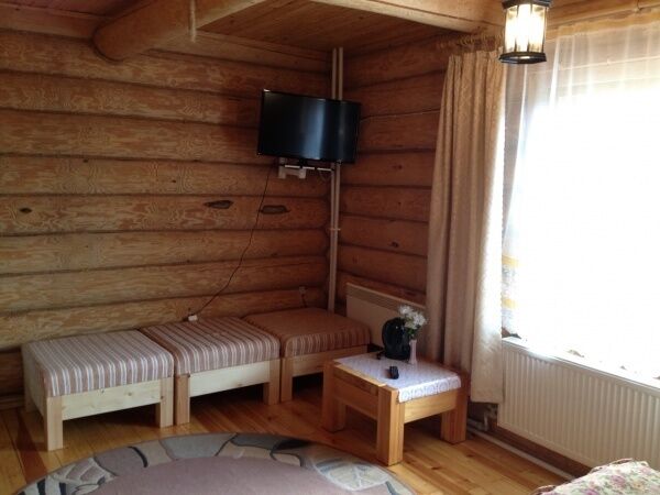 В каждом двухместном номере стоит двухспальная кровать и 2 тумбочки. В гостинной удобный мягкий уголок и телевизор.