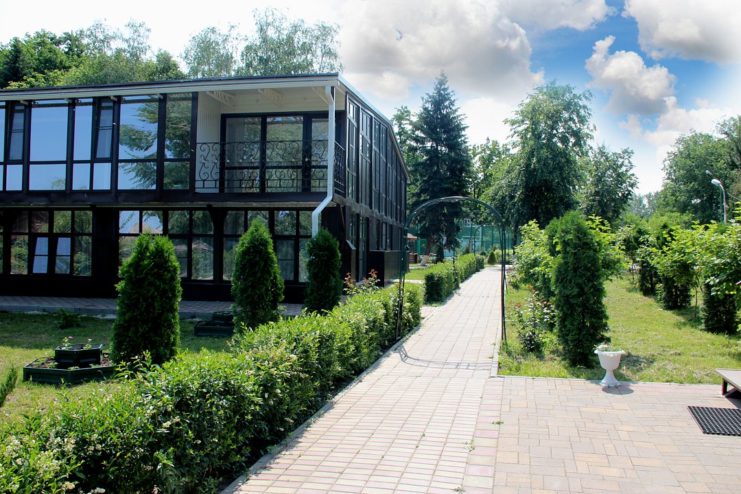 На территории есть березовая роща, оборудованная дорожками и площадками, удобными для прогулок, в том числе и маломобильных гостей.