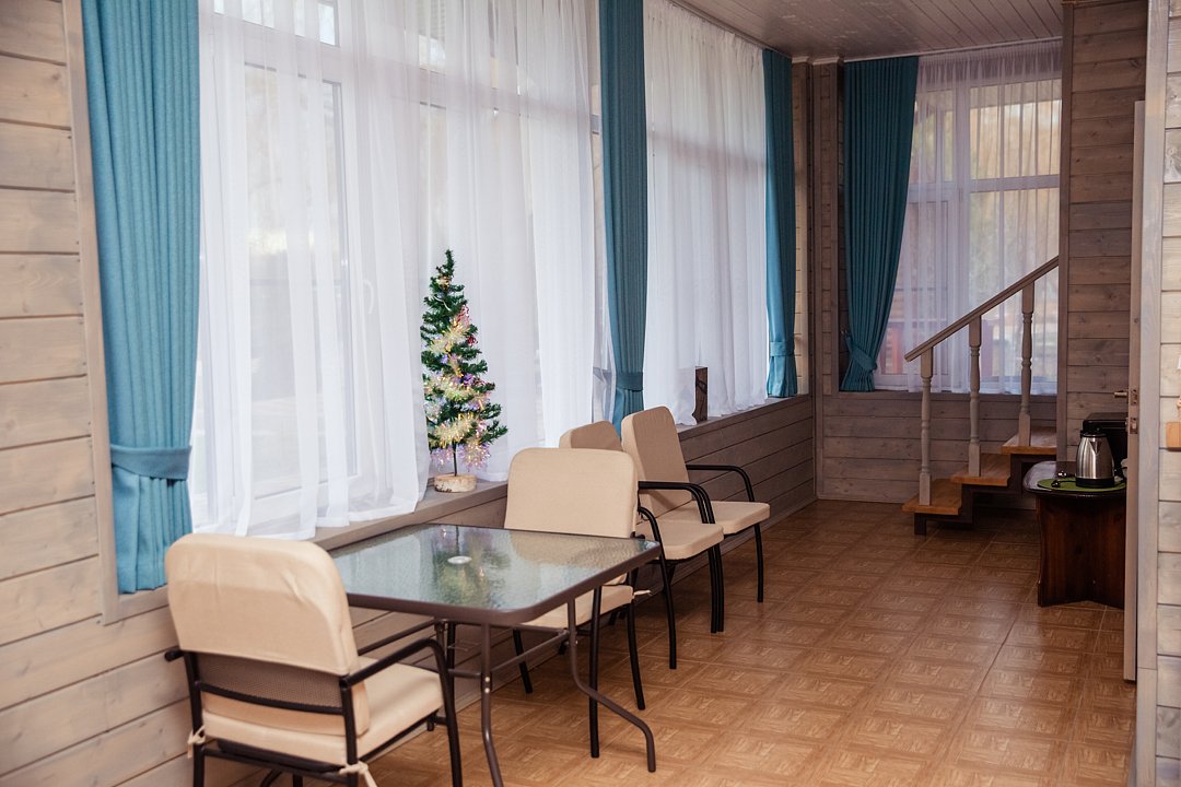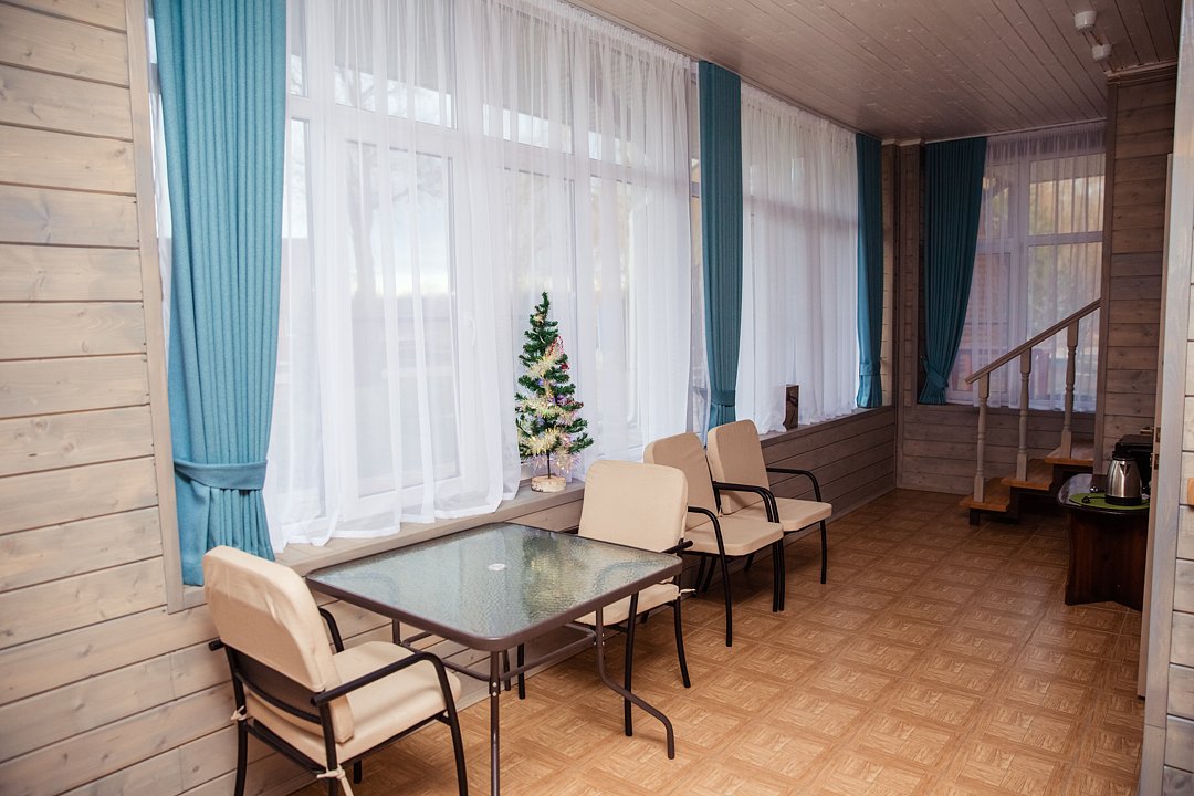 На территории находится красивая березовая роща с прогулочной зоной и песчаный пляж с шезлонгами. Для любителей активного отдыха оборудовано футбольное поле, бильярдные столы и бадминтон. А для тех, кто хочет расслабиться после насыщенного дня, будет предложена баня с бассейном.