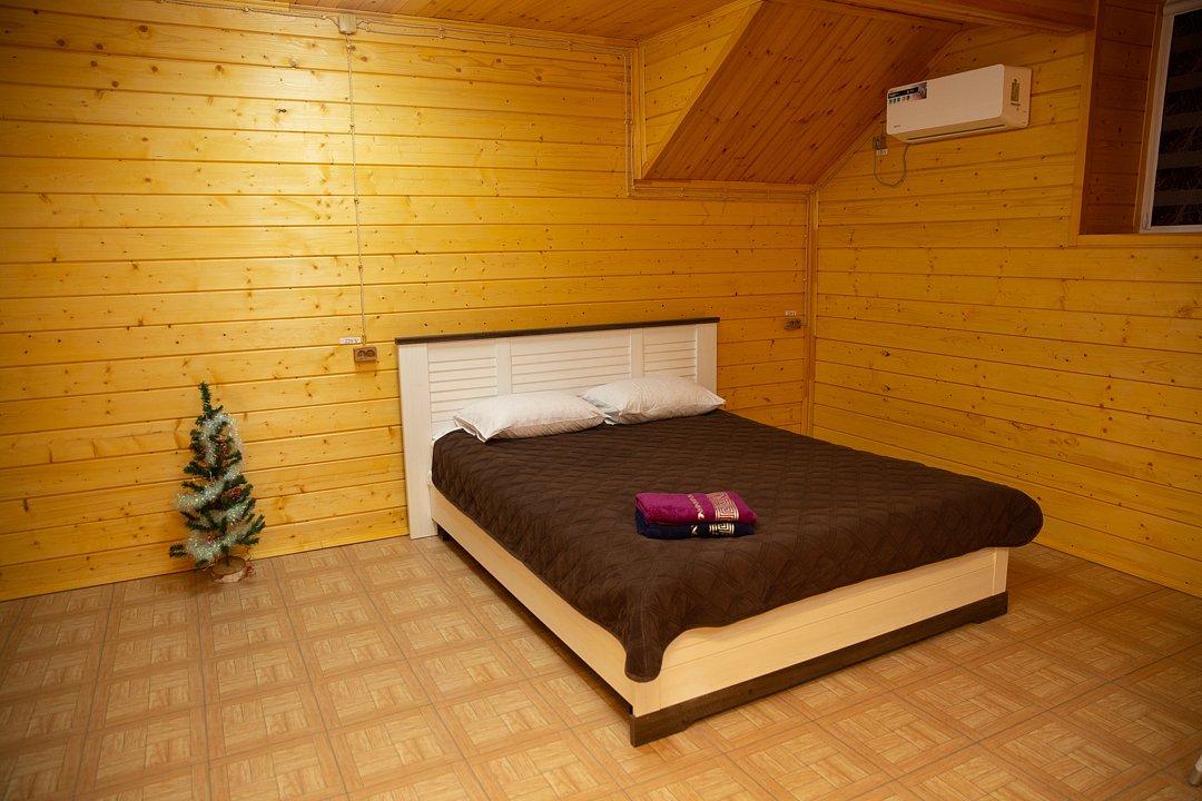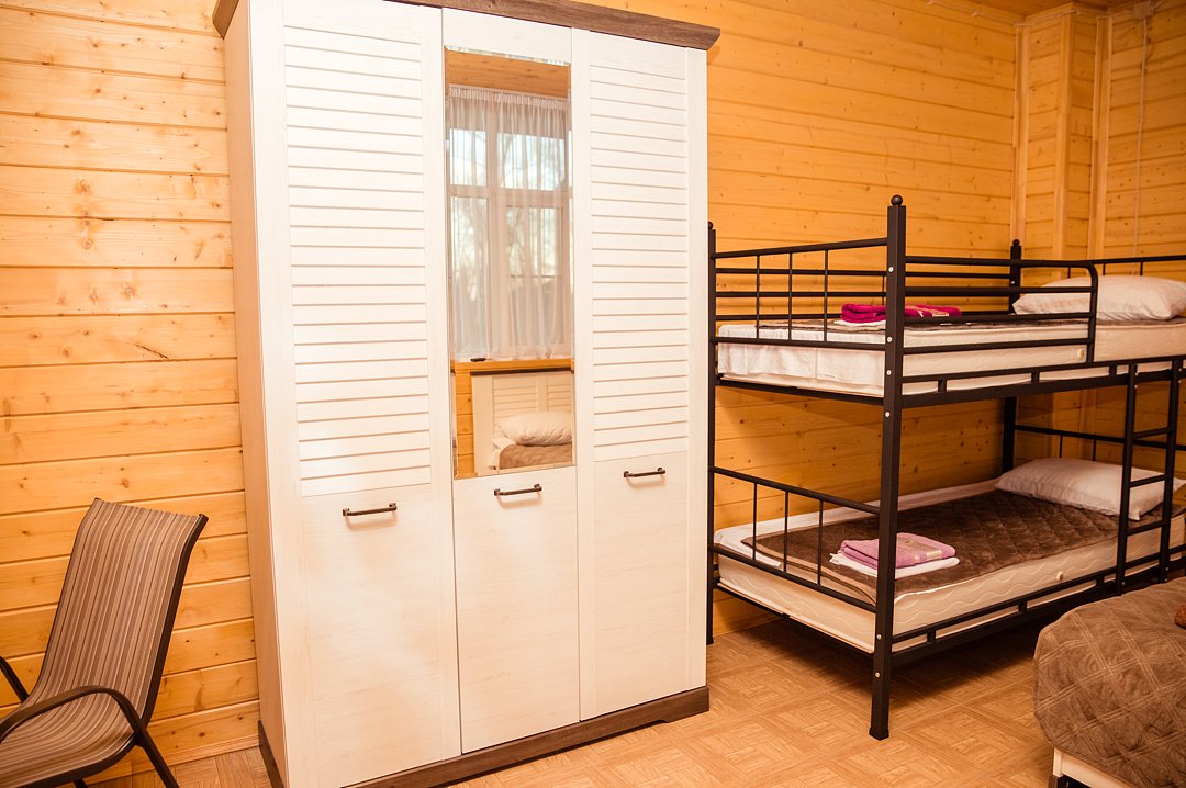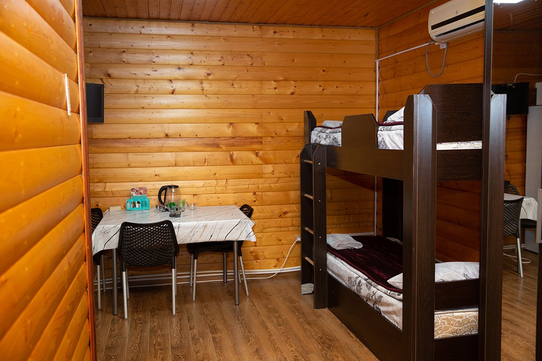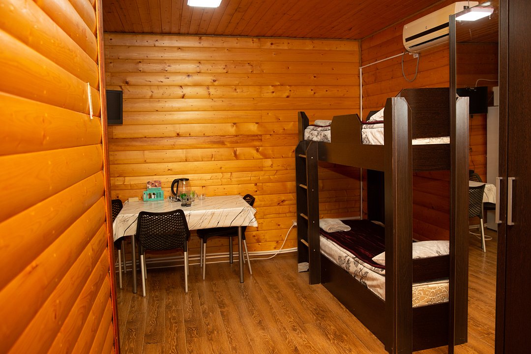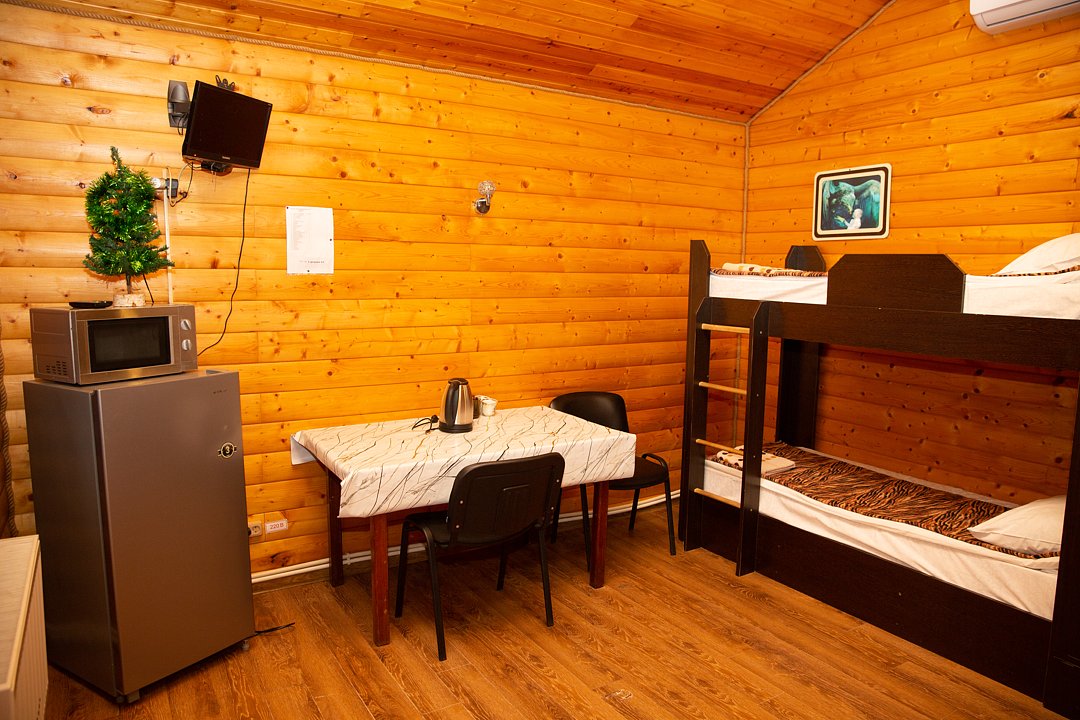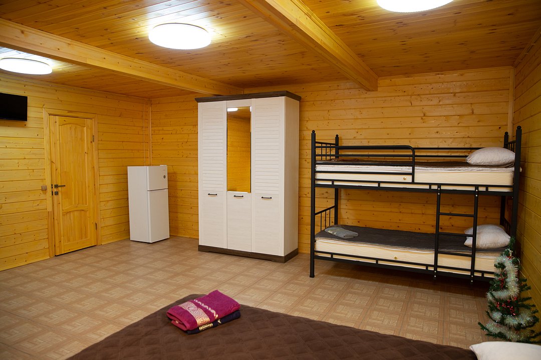В номере одна двуспальная кровать и одна двухъярусная кровать. Свежее чистое постельное и полотенца. А так же кондиционер, телевизор, холодильник, микроволновая печь, чайник. Номер оснащен отдельным санузлом. Wi-Fi в номере.