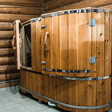Вам предложат кедровую бочку, хорошо известную своими целебными свойствами. Благодаря тому, что бочка запаривается на целебных травах, пребывание в ней подарит вам не только релакс, но и оздоровление вашего организма. После кедровой бочки вы можете угоститься чашечкой ароматного чая.