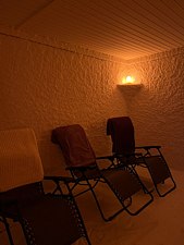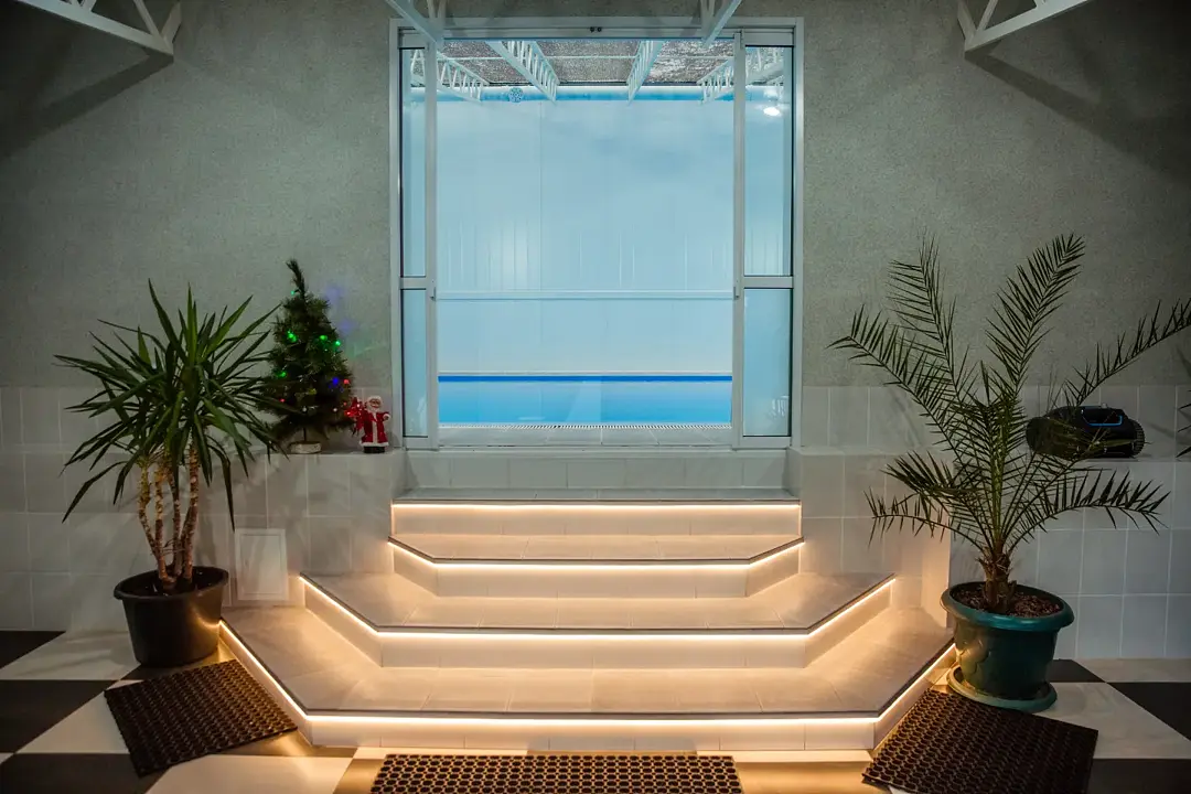 На территории базы отдыха есть теплый крытый бассейн, а так же баня за дополнительную плату. Так же можно устроить себе СПА релакс, сходить на массаж и посетить солевую комнату (услуги оплачиваются отдельно).