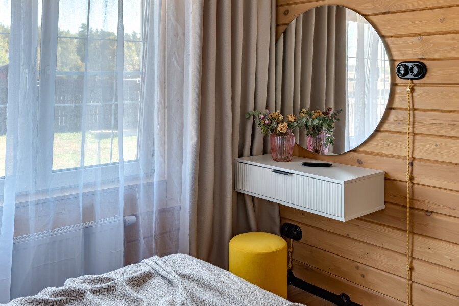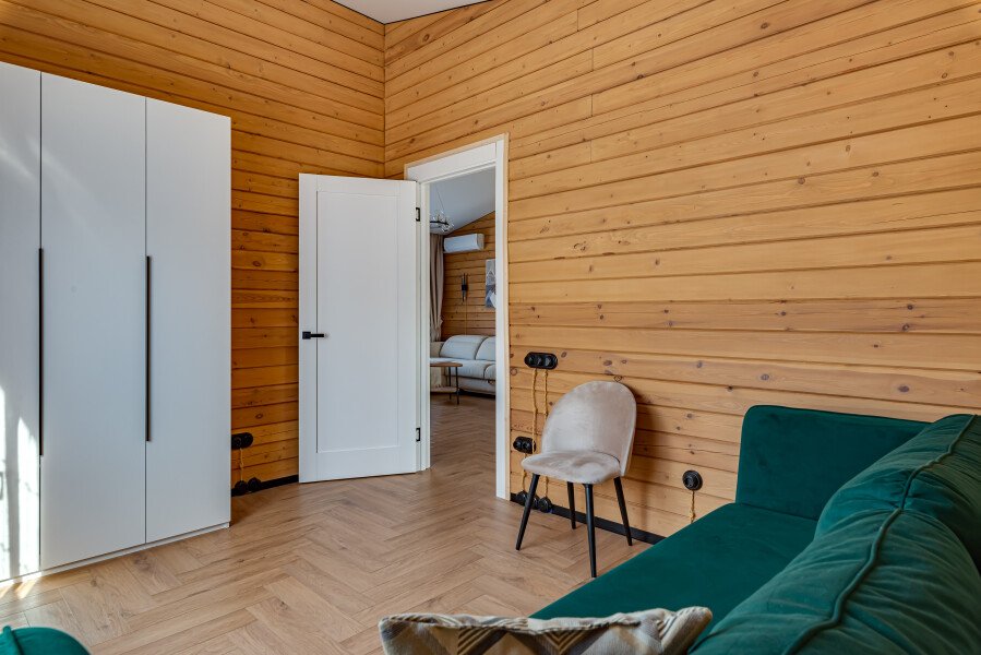 В доме имеется три спальни, гостиная, ванная, отдельная кухонно-столовая зона, веранда для отдыха и вся необходимая техника для быта и расслабляющего досуга. Наличие отопления, тёплых полов и кондиционера позволят вам с комфортом остановиться здесь в любое время года.