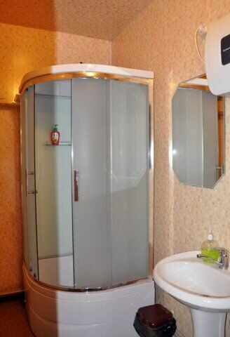 Трехместный номер с раздельными кроватями и ванной комнатой.
