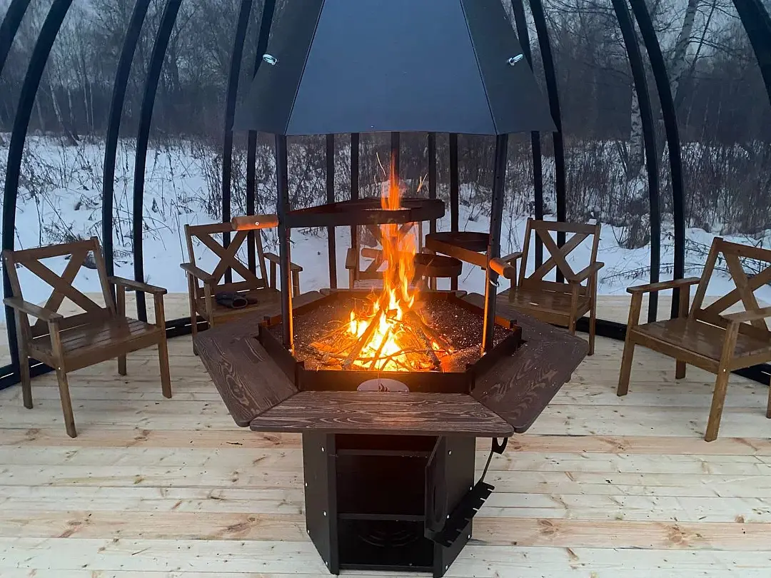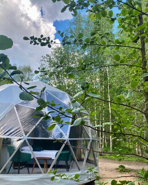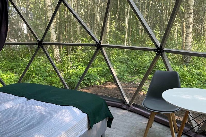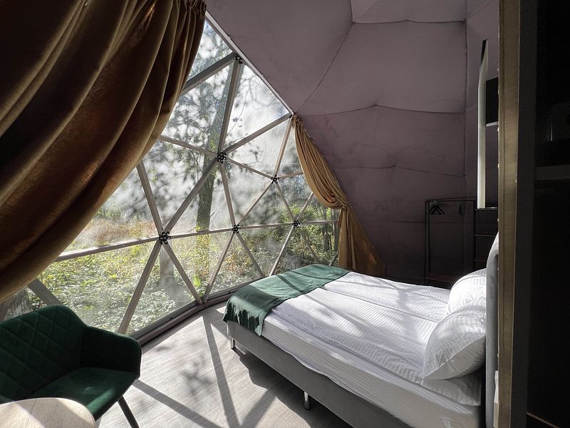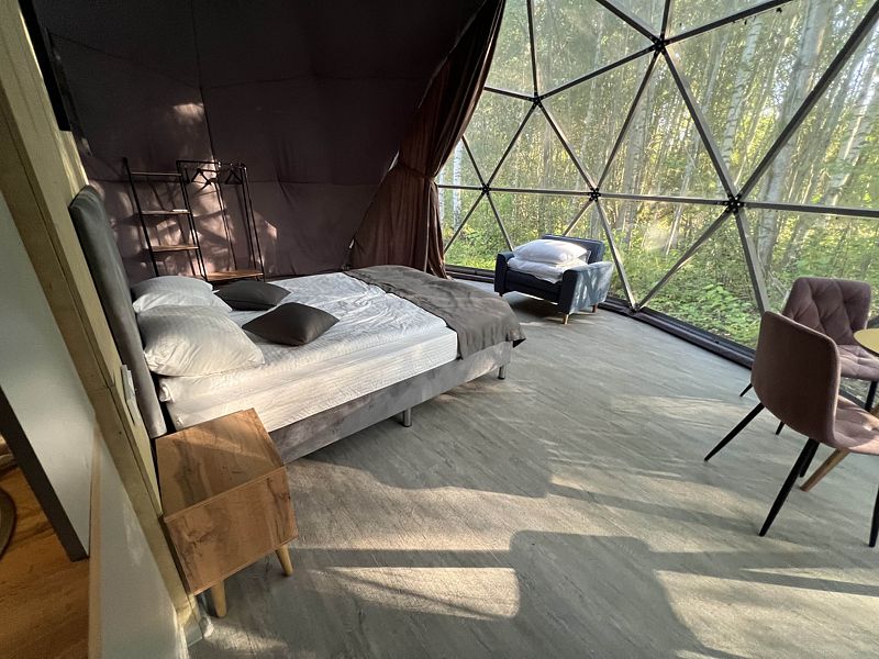 Для развлечений и связи предусмотрен бесплатный высокоскоростной Wi-Fi. А панорамные окна сферы подарят восхитительные виды на окружающий лес.