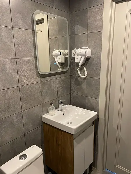 В номере двухспальная кровать размера king size, прикроватные тумбы с usb зарядкой. В номере журнальный столик со стульями. В санузле имеется фен.