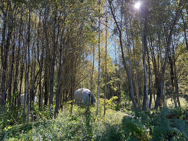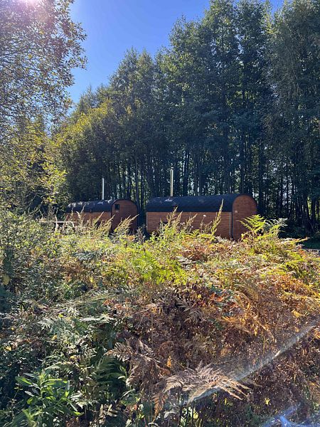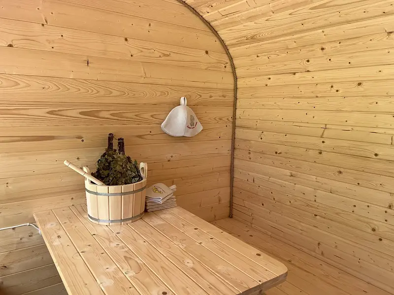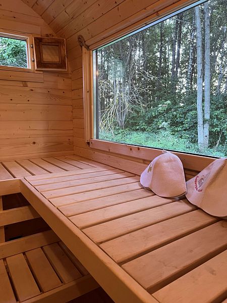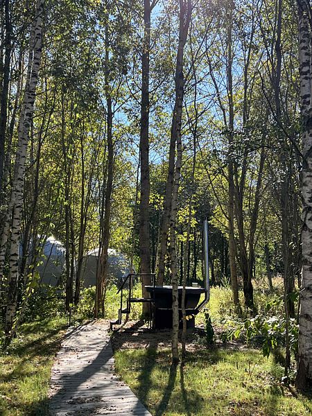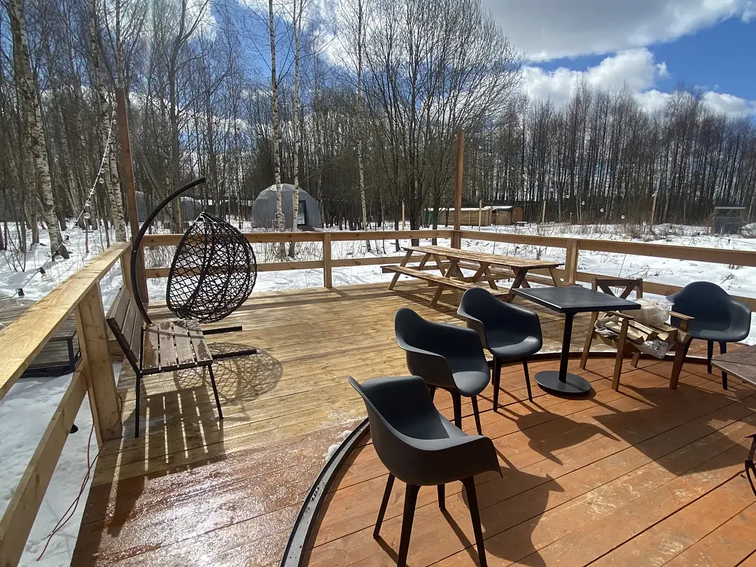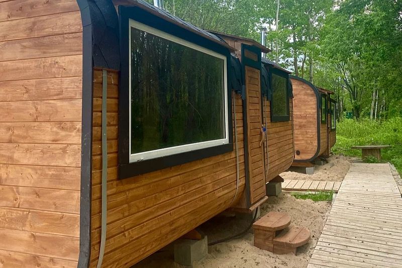 На территории глэмпинга располагаются две просторные бани с панорамными окнами, а также горячий чан-купель с ароматными травами, где можно по-настоящему расслабиться в единении с окружающим миром.