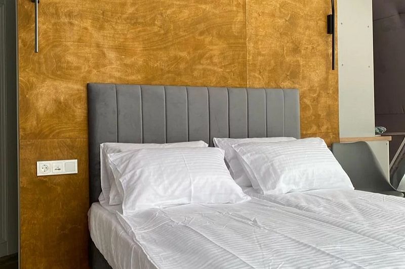 В номере две кровати, прикроватные тумбы с usb зарядкой. В номере журнальный столик со стульями. В обособленной зоне расположена кухня с микроволновой печью и посудой. В санузле имеется фен.